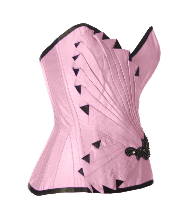 Baby Pink Satin/Taffeta Embroidered Overbust Corset