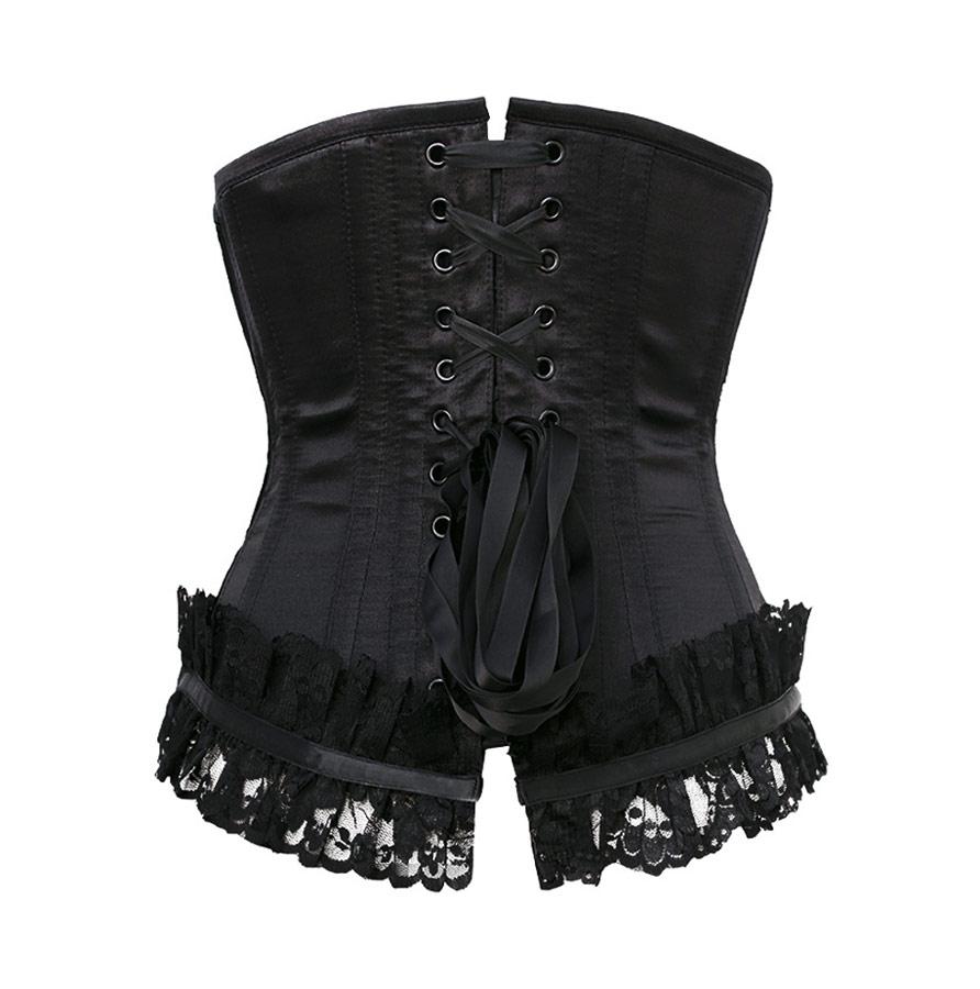 - Black Satin Underbust With Lace & Bow