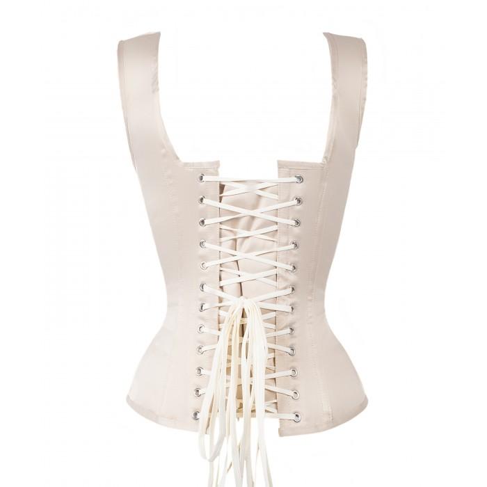 Authentic Steel Boned Ivory Satin Overbust Corset