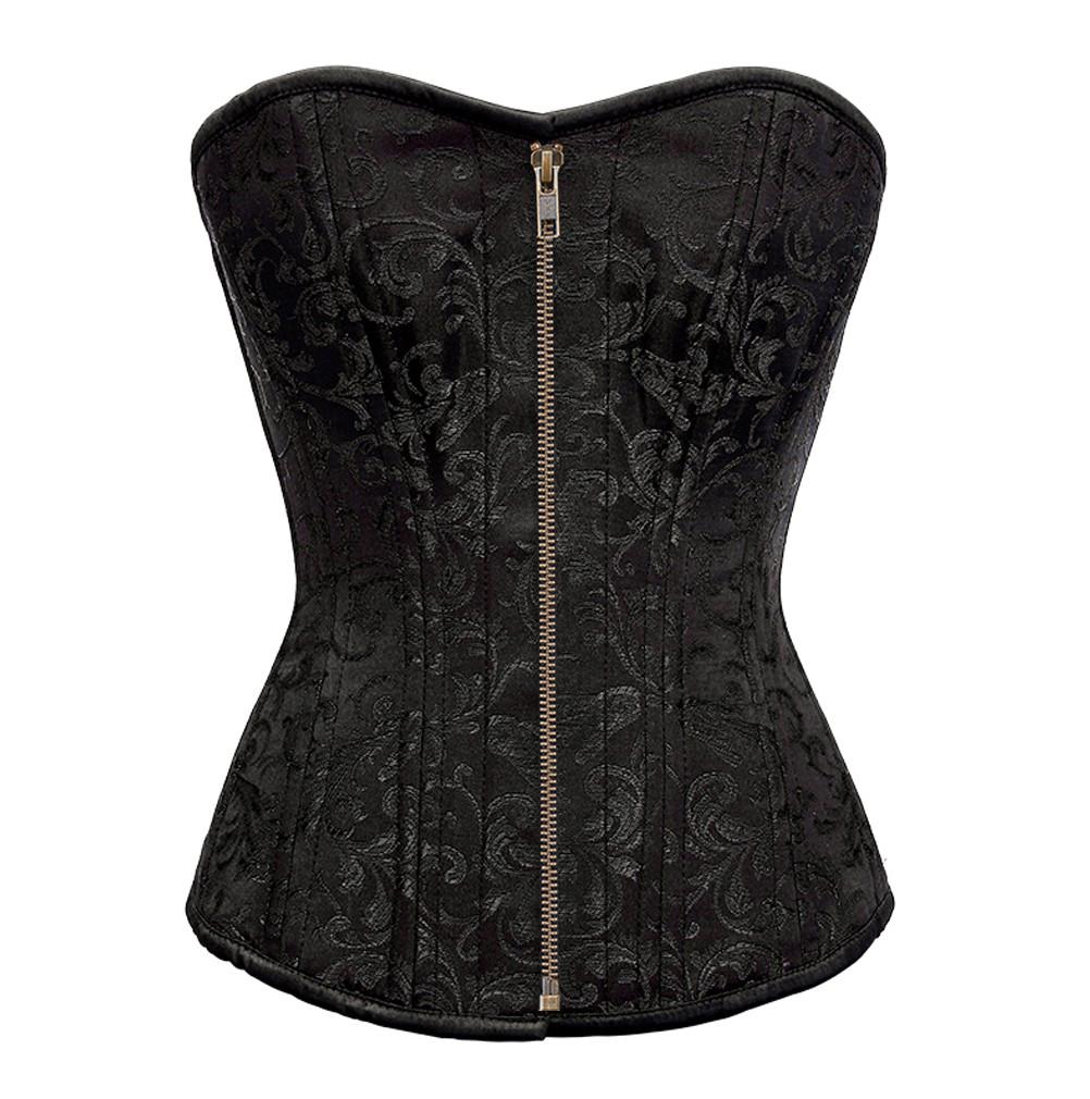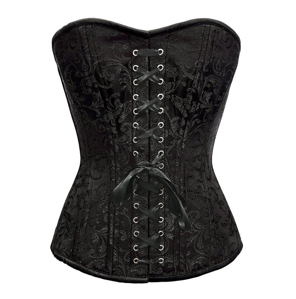 • Black Brocade Overbust Waist Training Corset