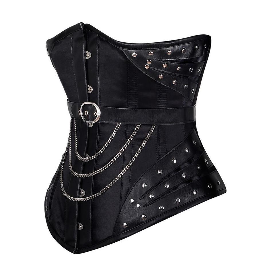 - Authentic Steel Boned Black Satin & Faux Leather Underbust Corset