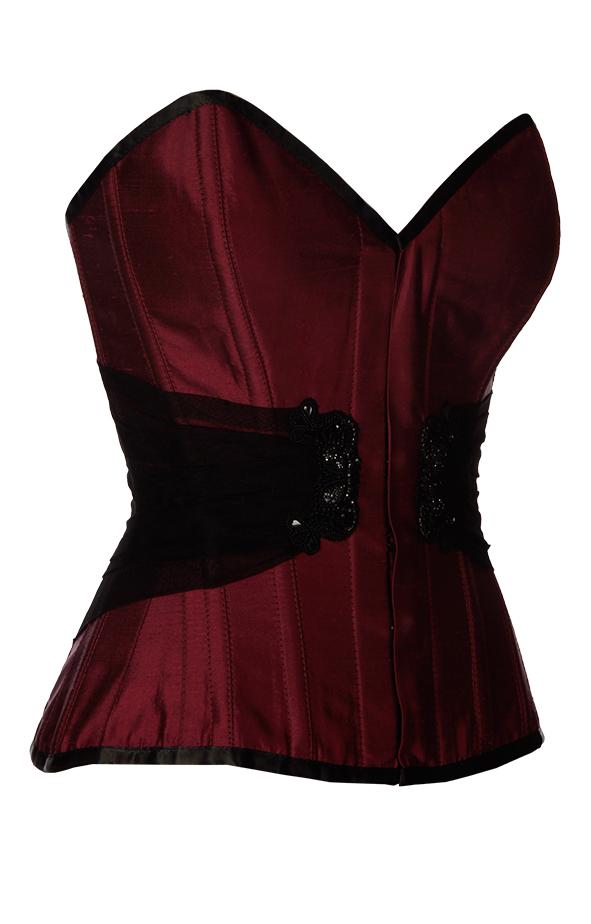 - Authentic Steel Boned Embroidered Satin Overbust Corset