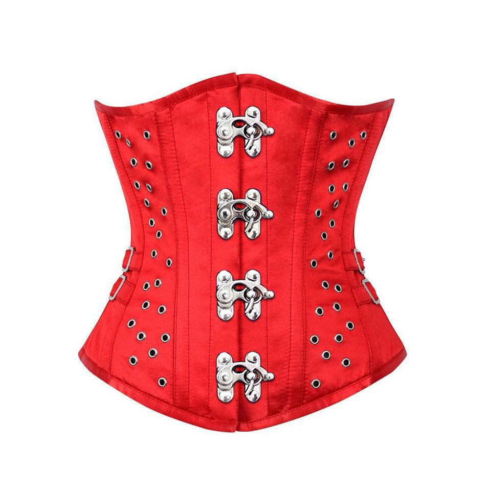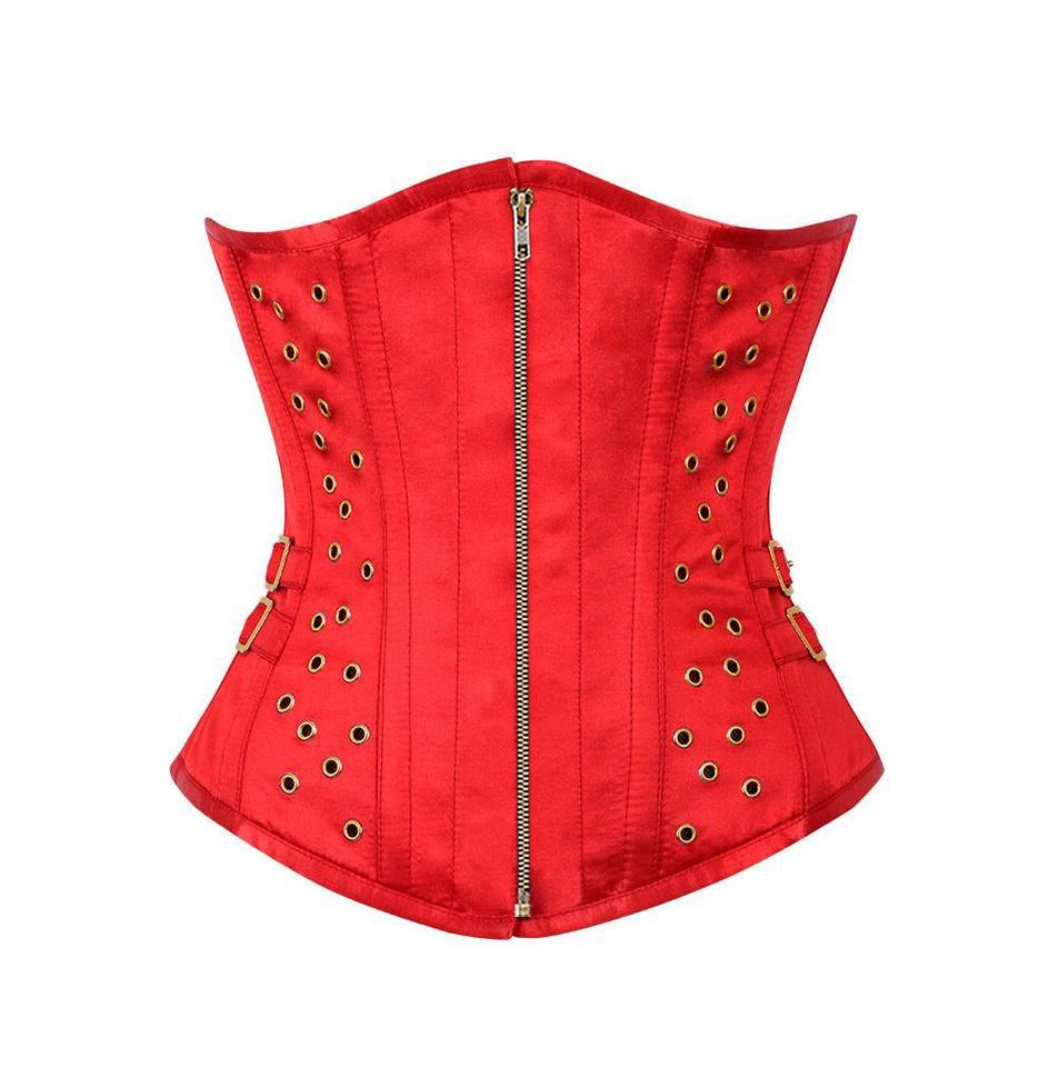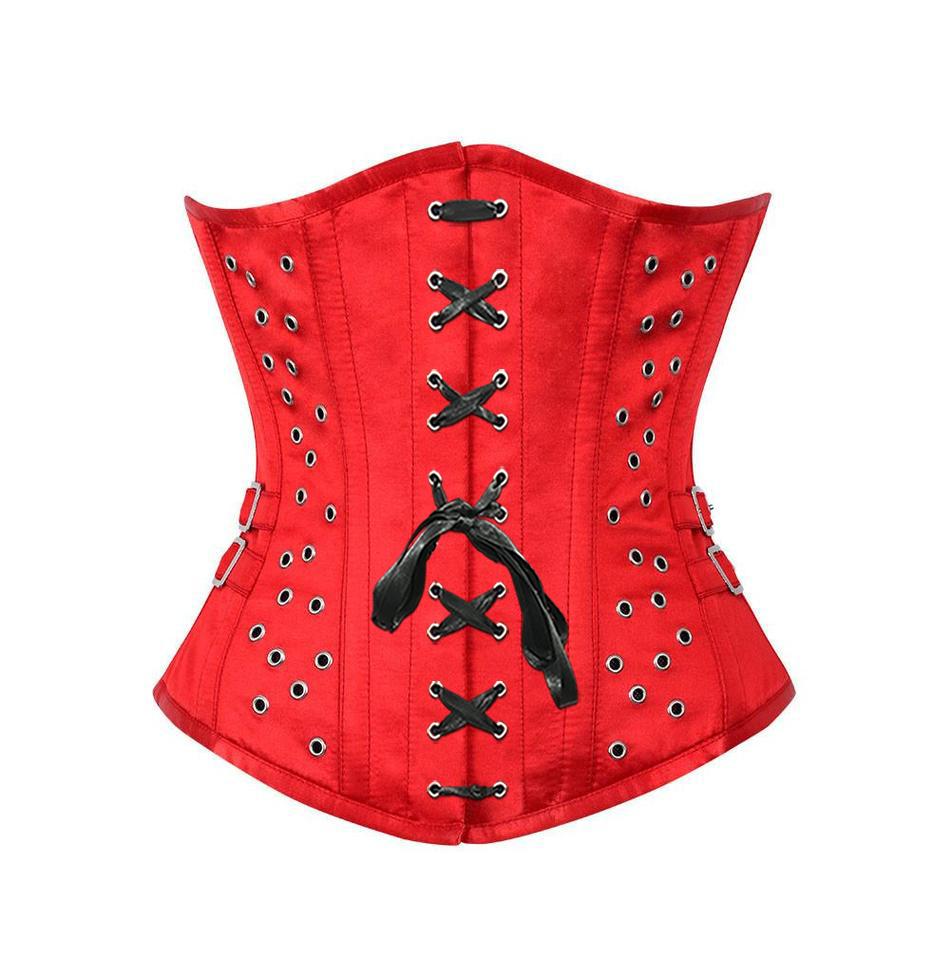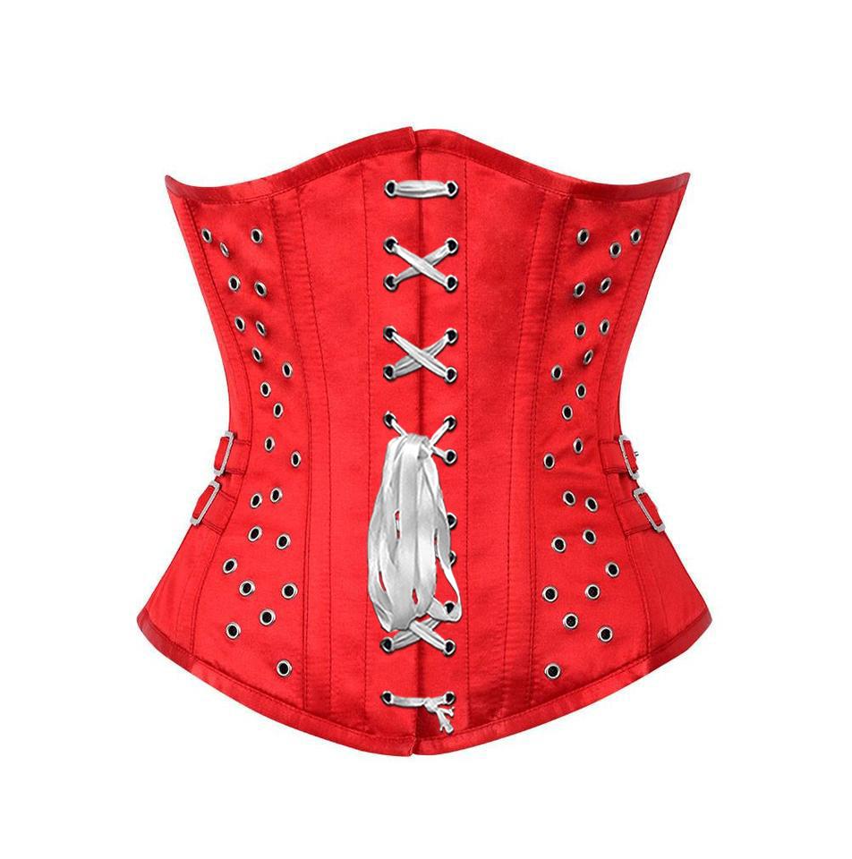 - Authentic Steel Boned Red Satin Underbust Corset