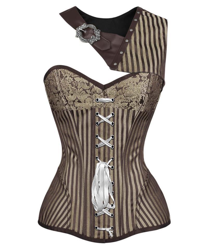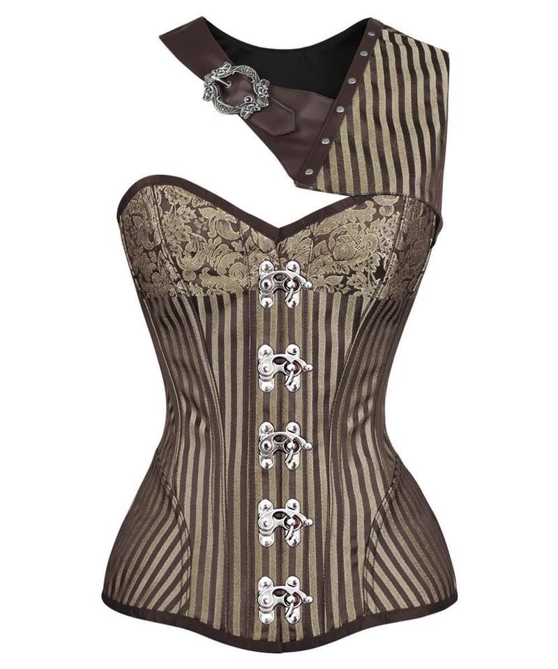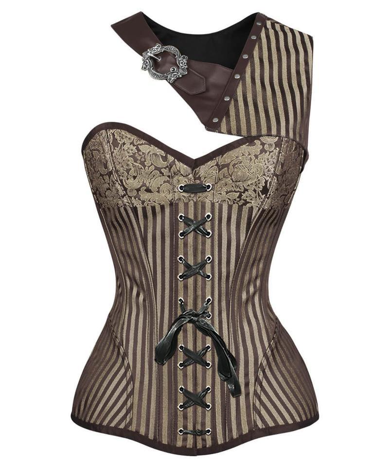 Spiral Steel Boned Brocade Steampunk Overbust Corset with Bolero