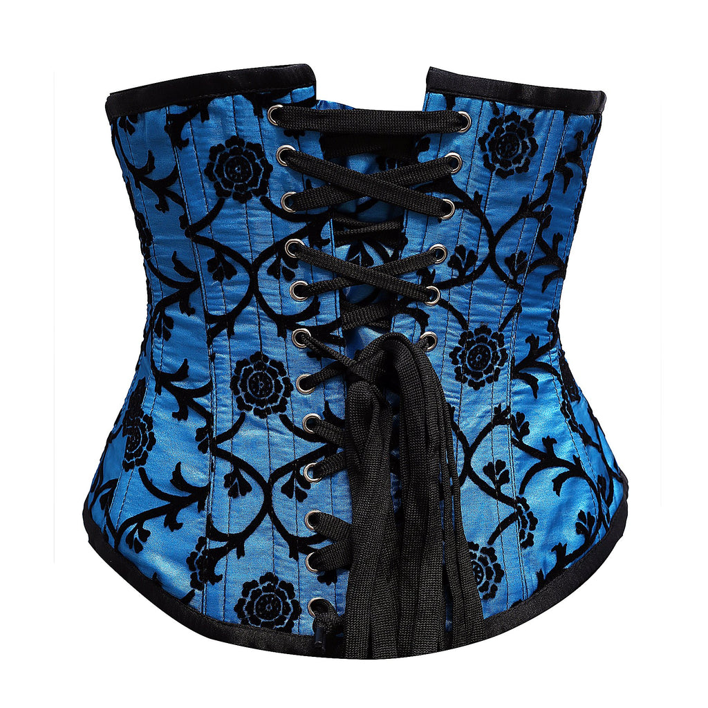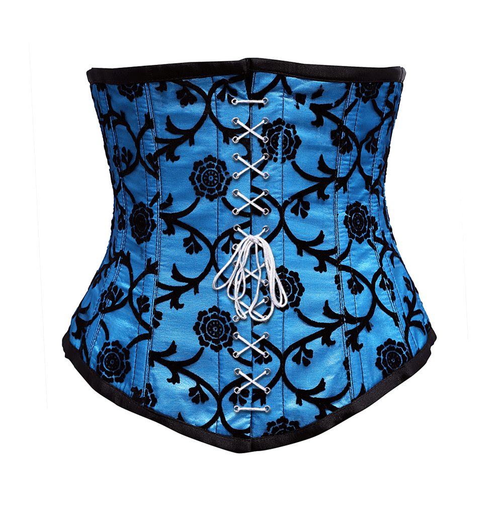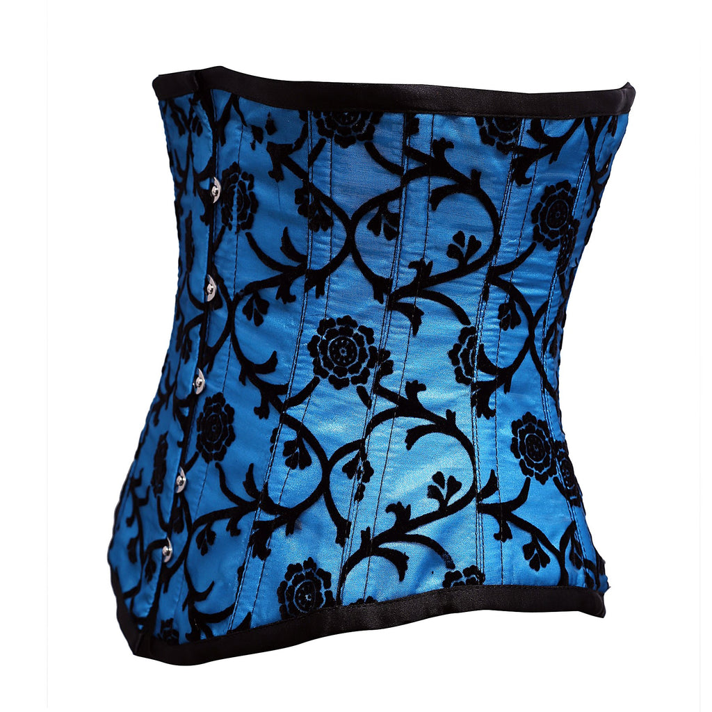 - Steel Bone Turquoise Satin Underbust Corset In Tissue Flocking
