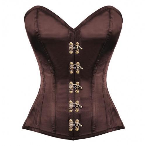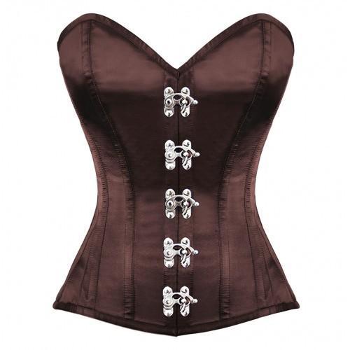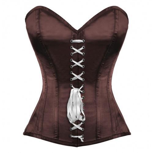 - Authentic Steel Boned Maroon Satin Overbust Corset