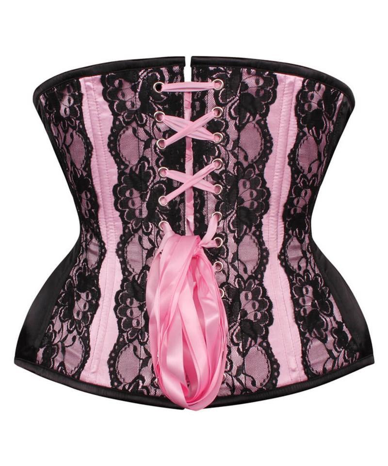 - Spiral Steel Boned Underbust Curvy Corset in Pink Satin