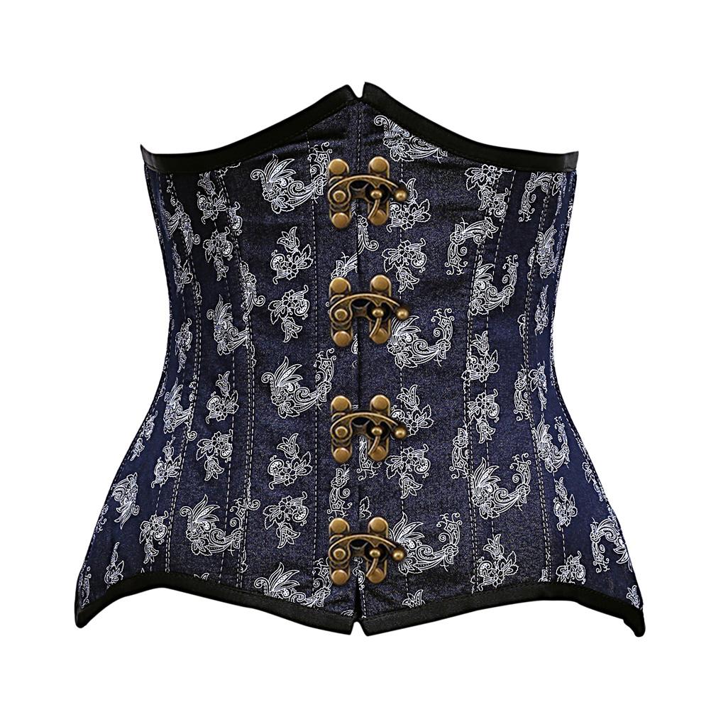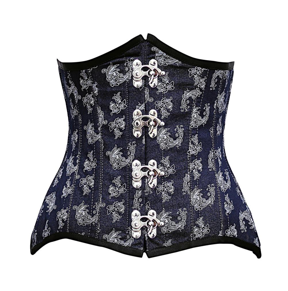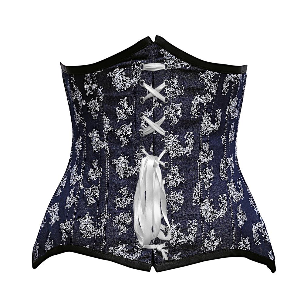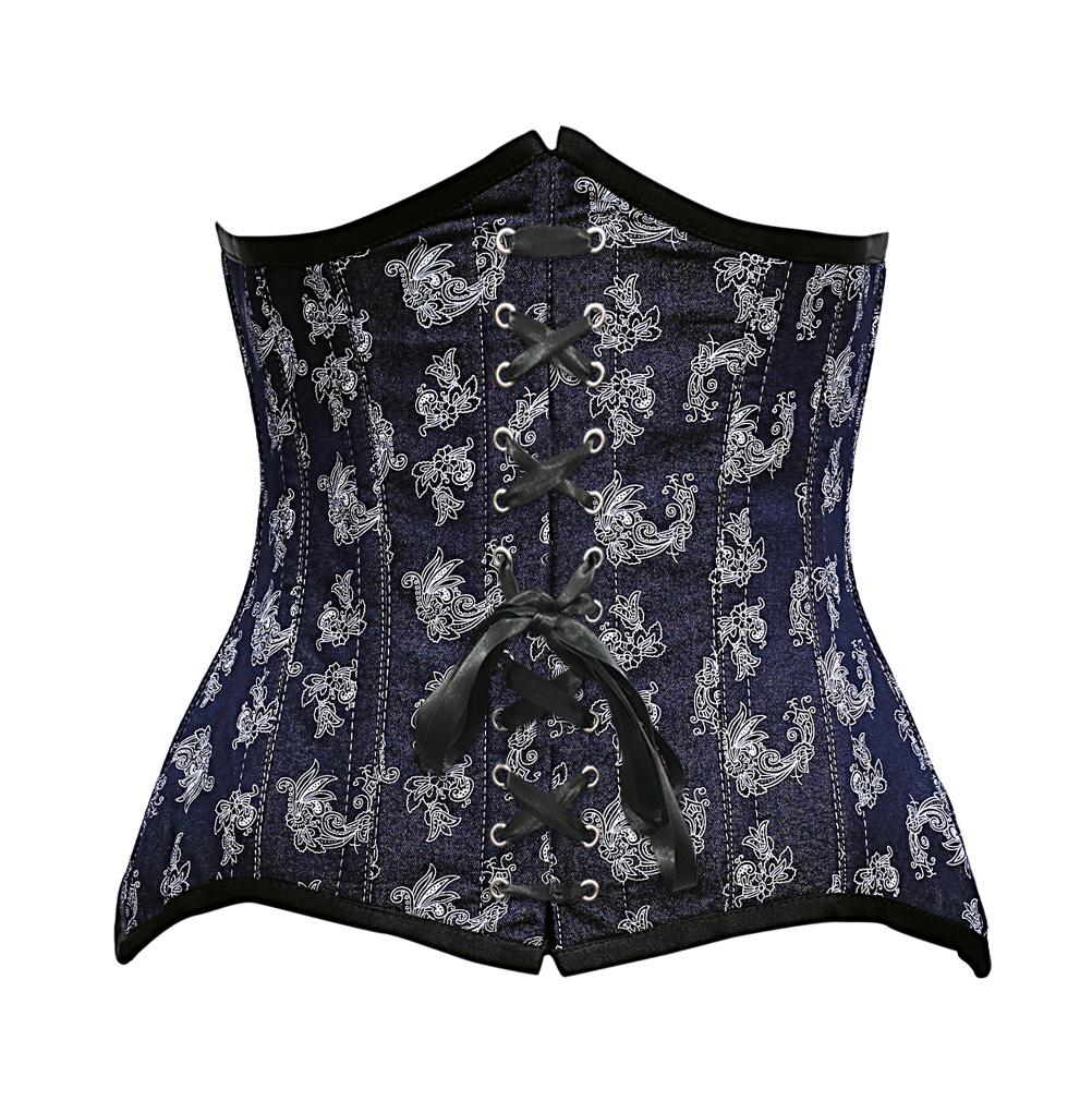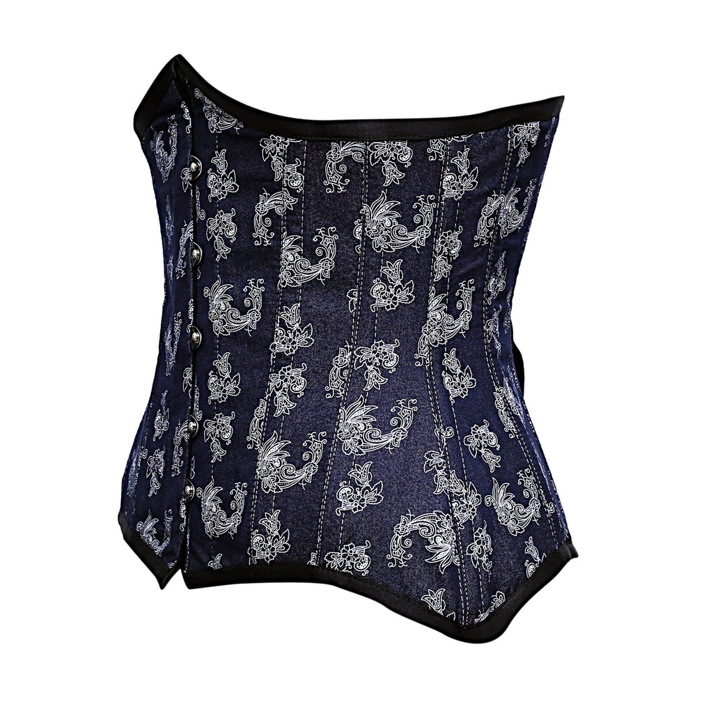 - Steel Boned Floral Print On Denim Underbust Curvy Corset