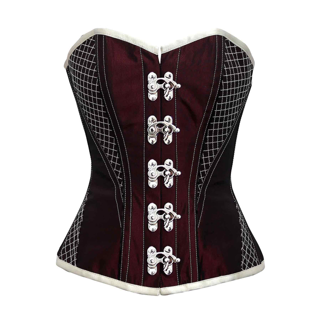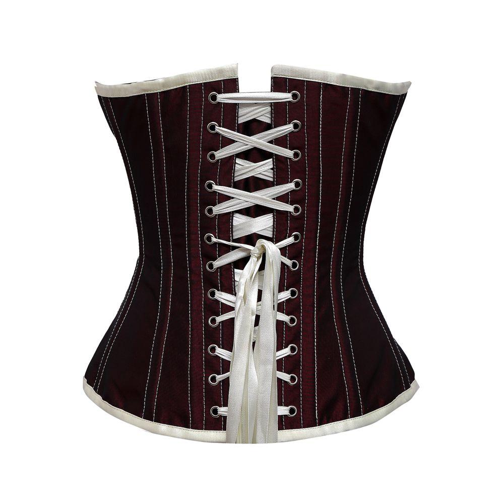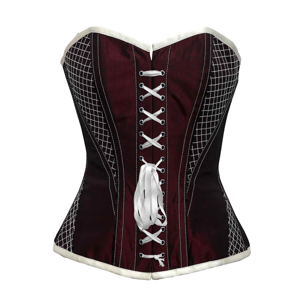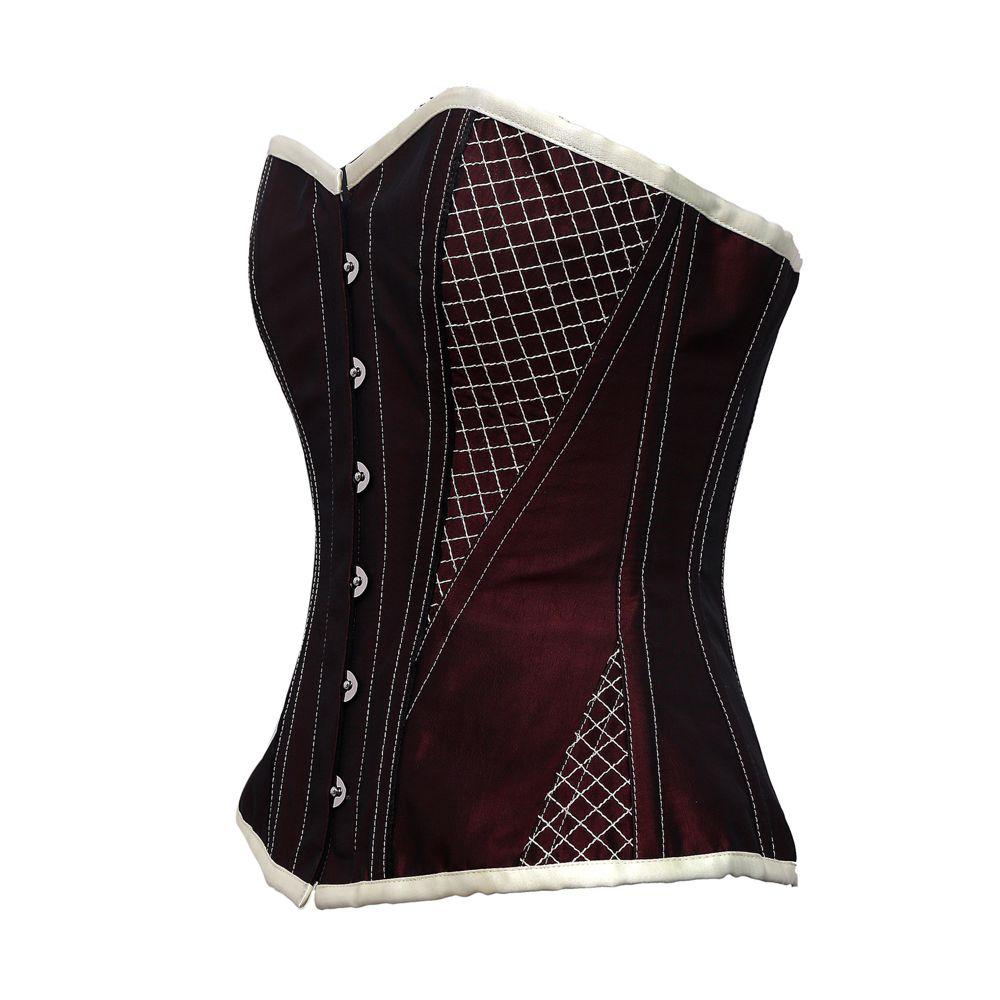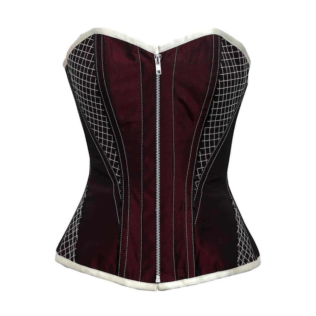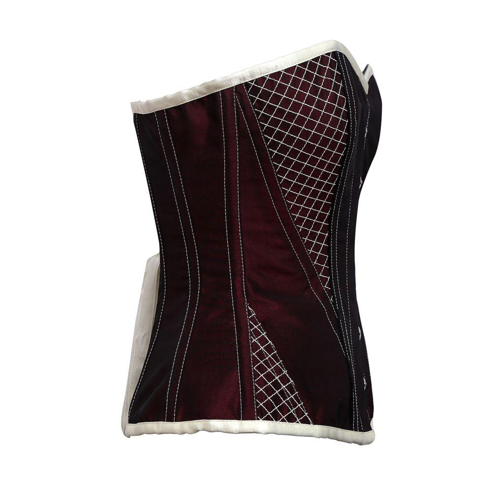 - Burgundy Embrodiery Taffeta Steel Boned Overbust Corset