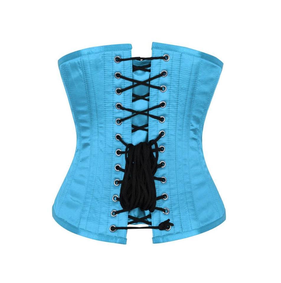 - Authentic Steel Boned Turquoise Satin Underbust Corset with Buckles