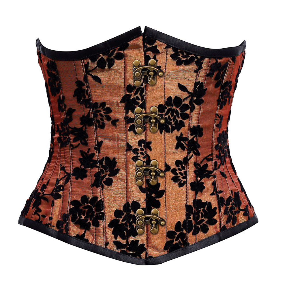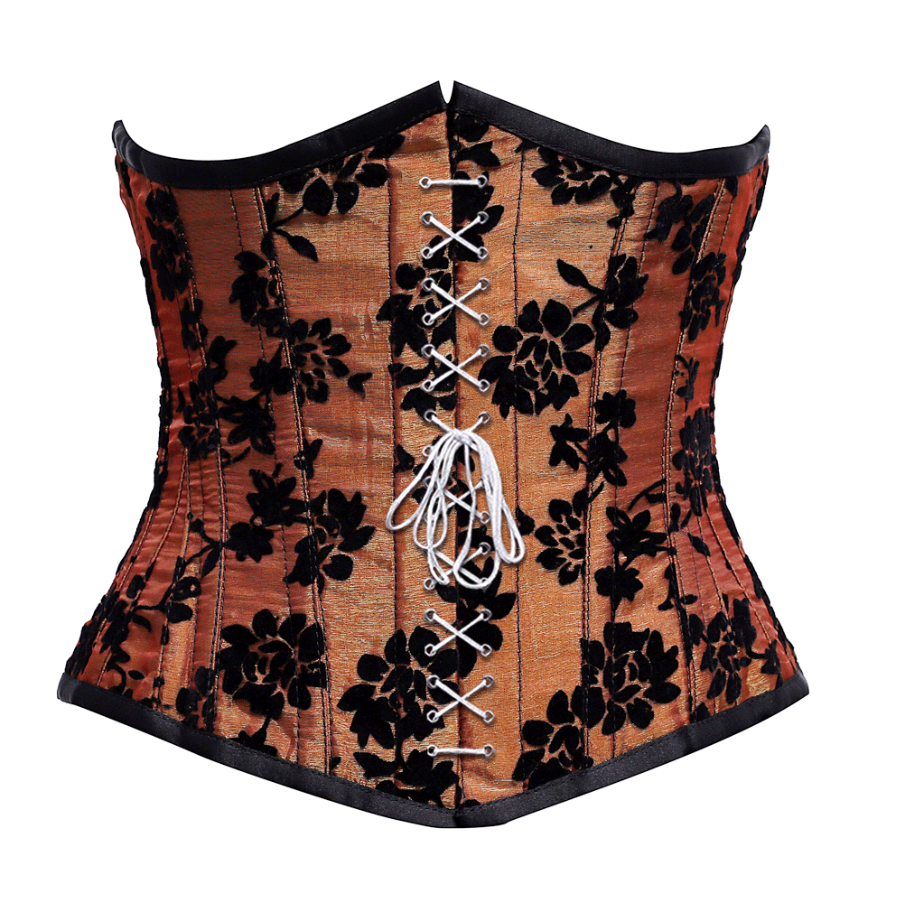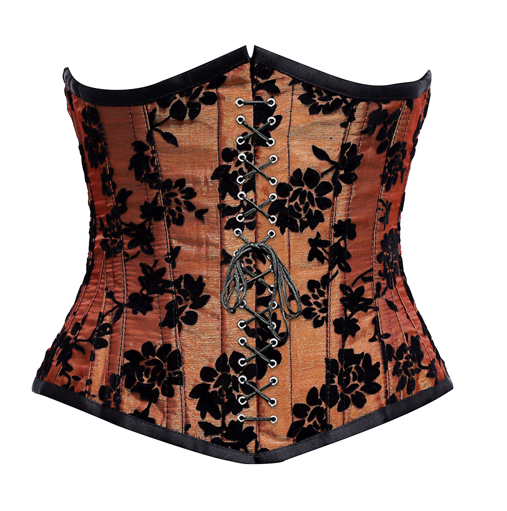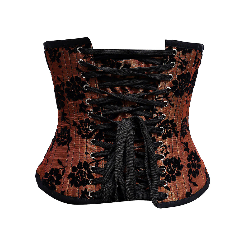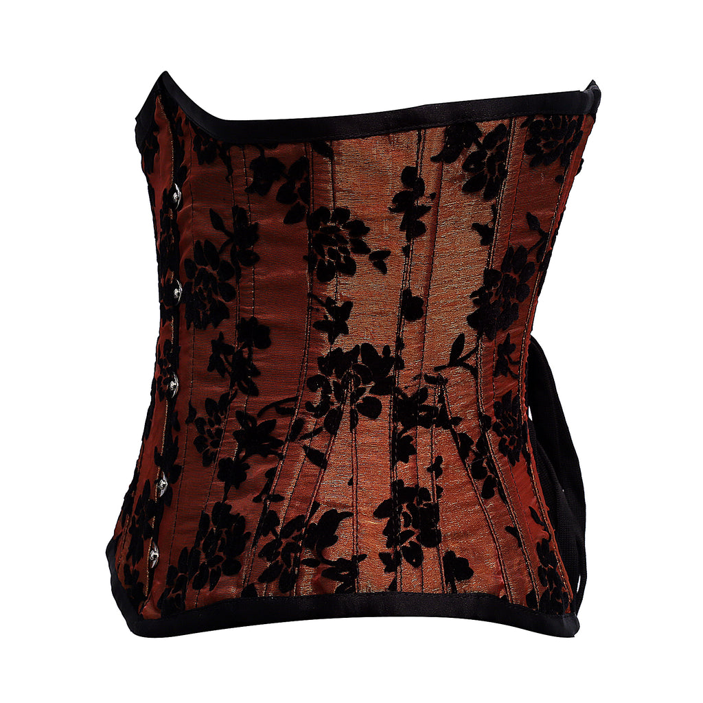 - Steel Bone Burgundy Underbust Corset In Tissue Flocking