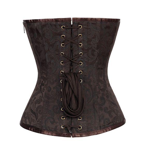 - Coffee Brocade Steampunk Overbust Corset