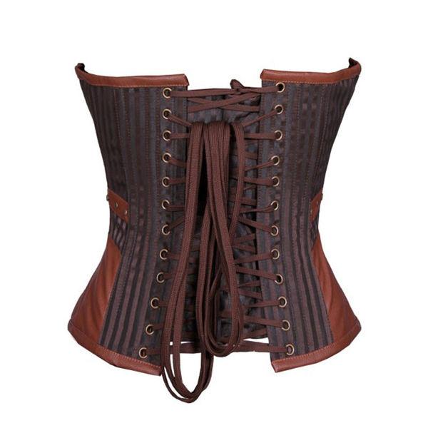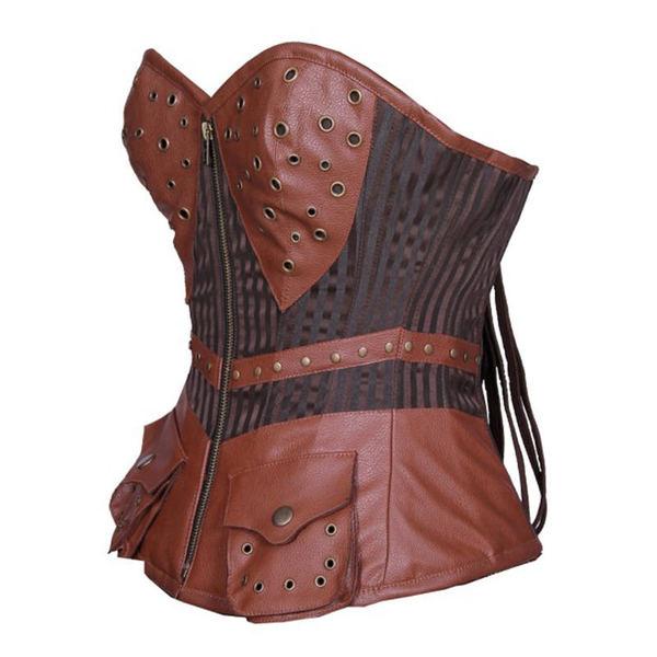- Coffee Brocade & Faux Leather Steampunk Overbust Corset