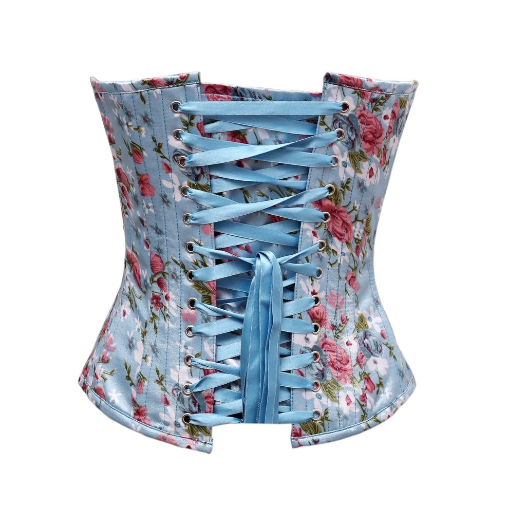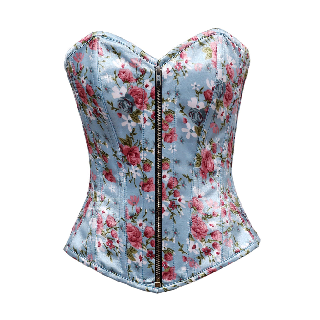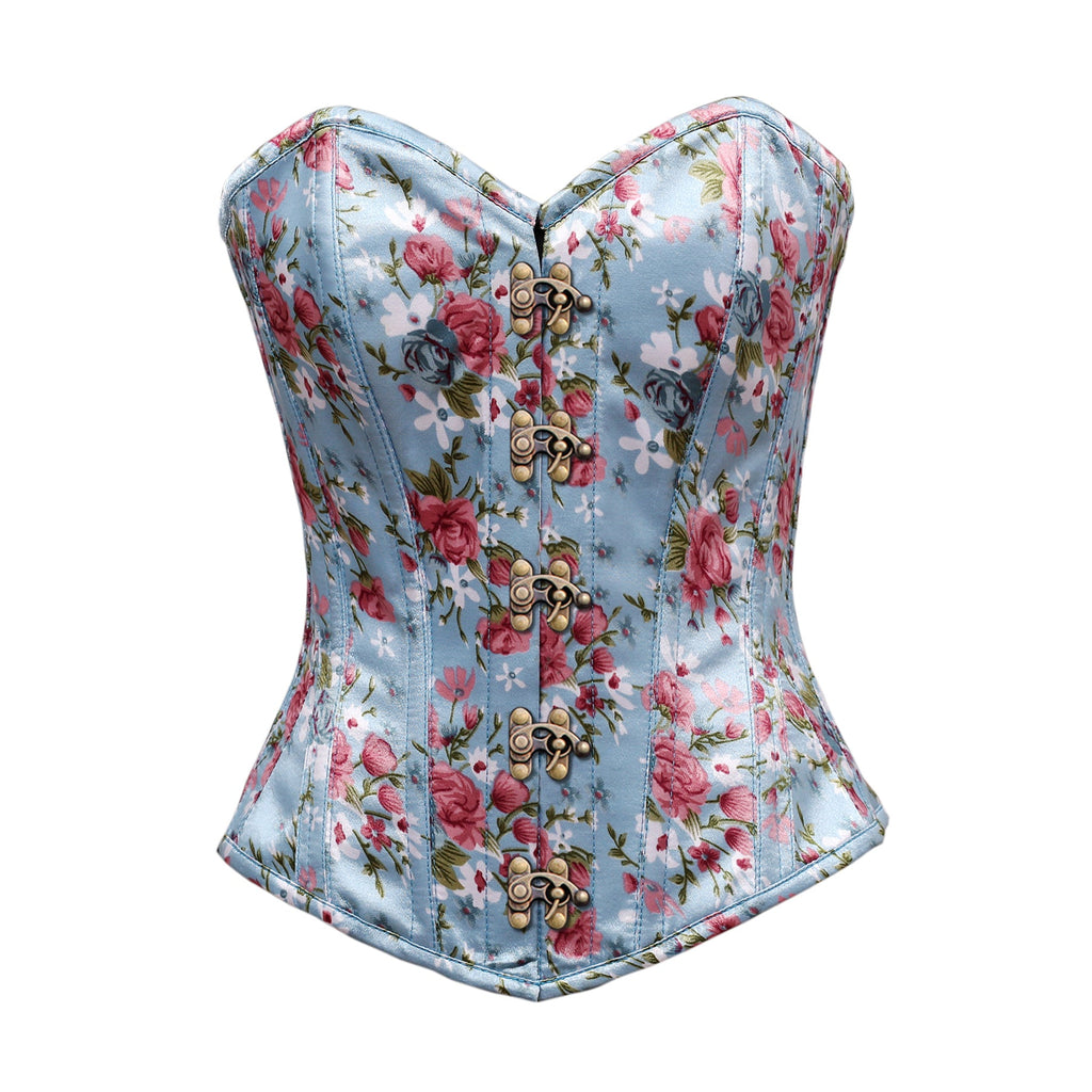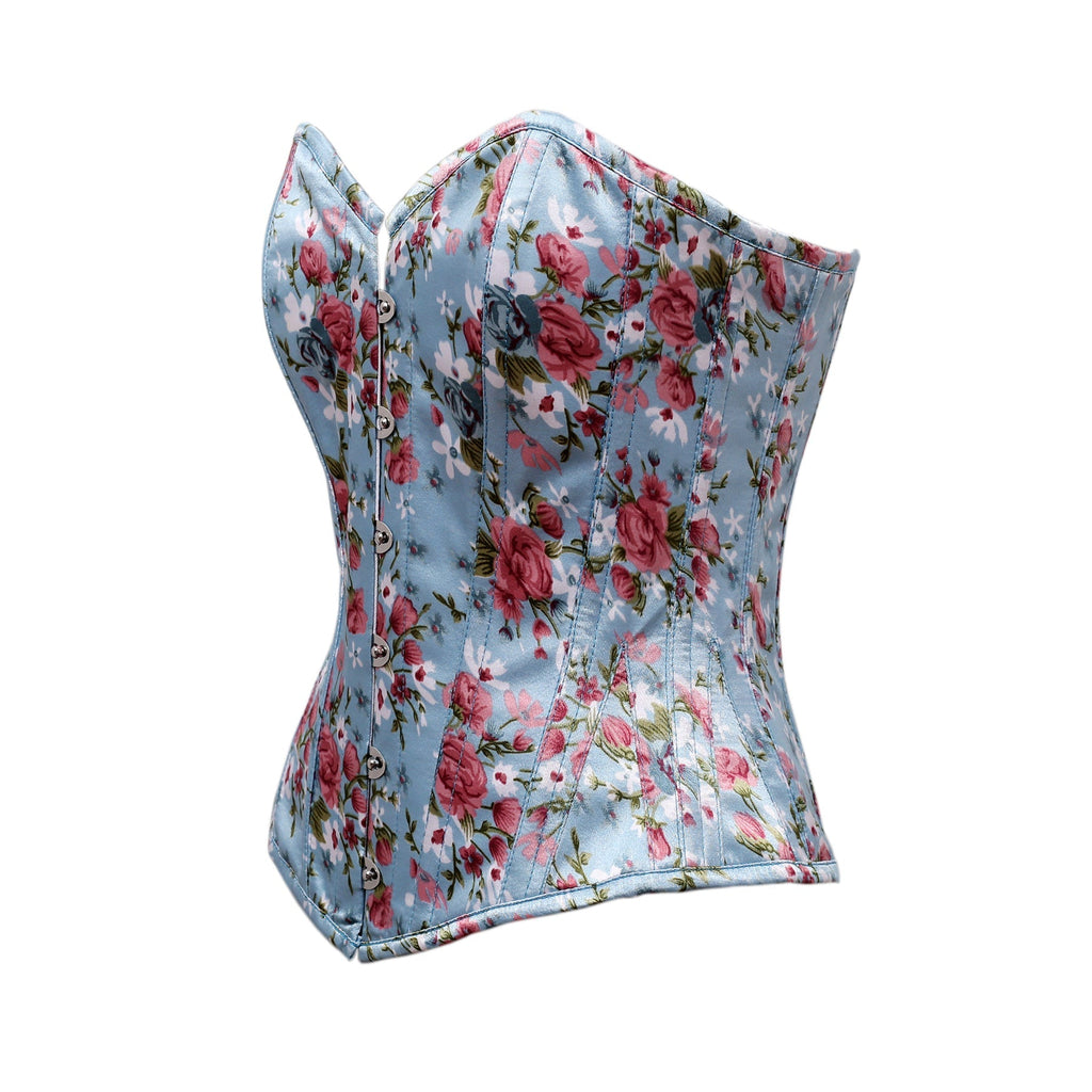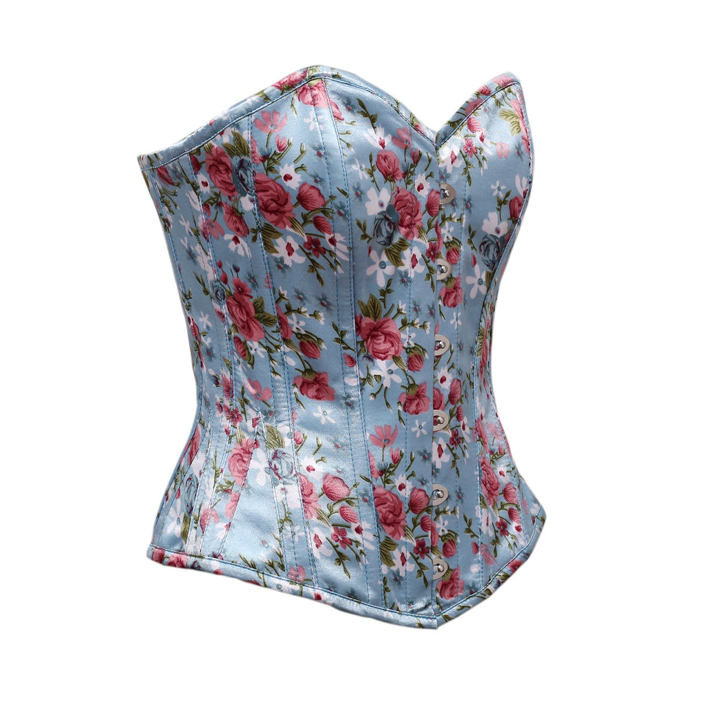 Steel Bone Floral Print Satin Overbust Corset
