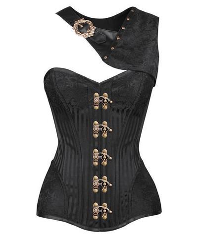 Spiral Steel Boned Brocade Gothic Overbust Corset with Bolero