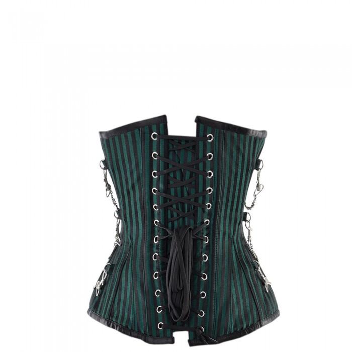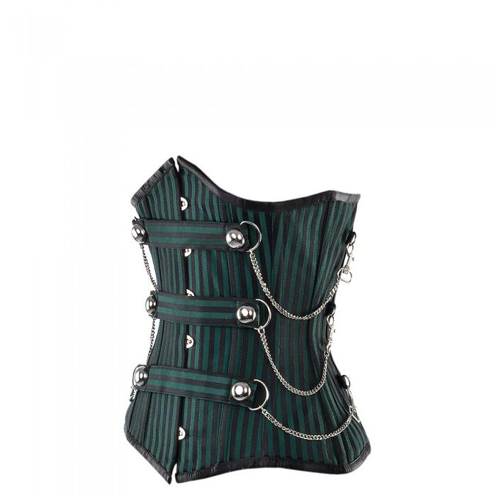 - Black And Green Striped Underbust With Chains