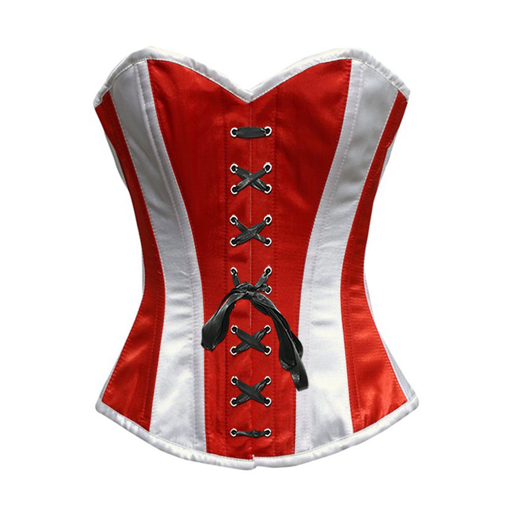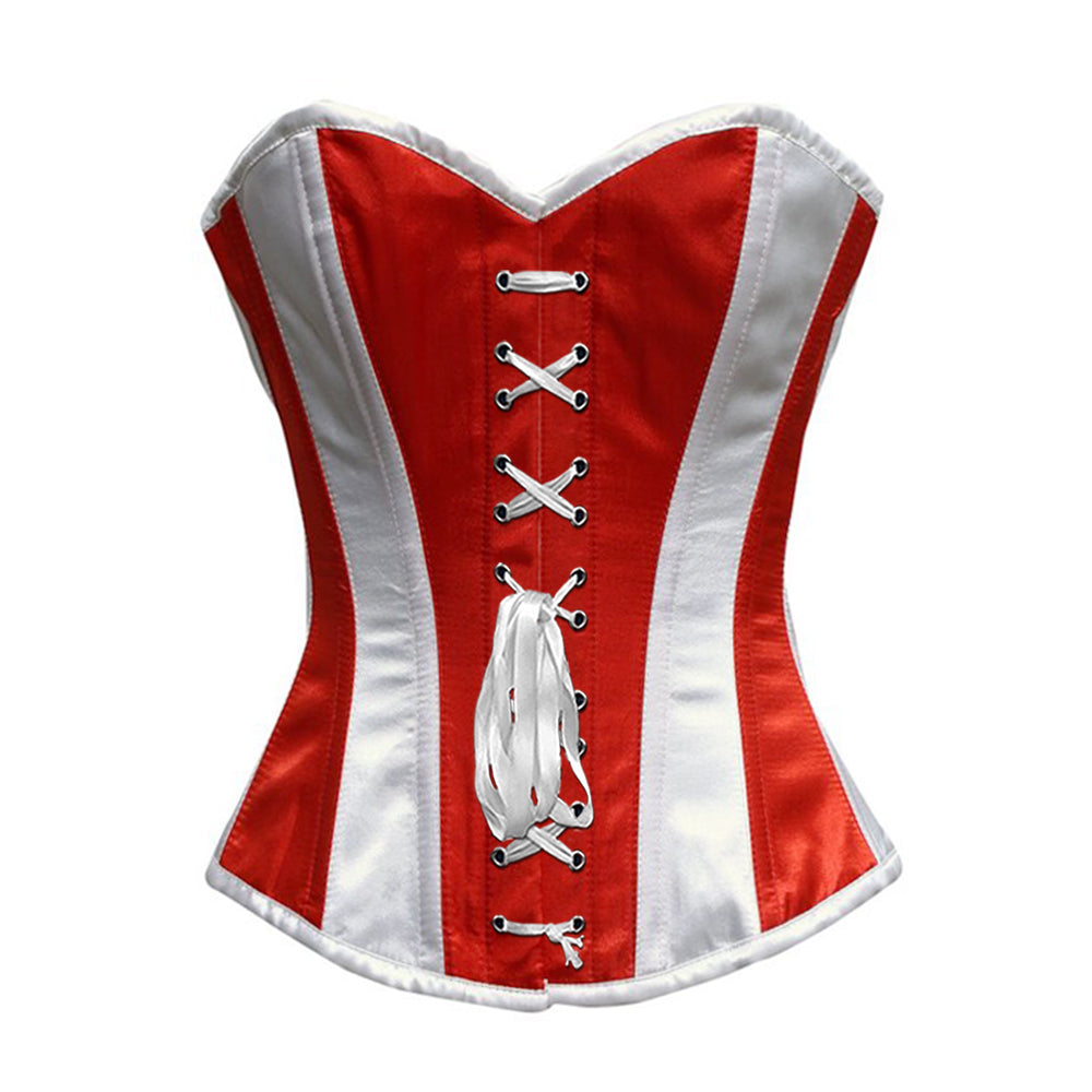 Authentic Steel Boned Red & White Satin Overbust Corset
