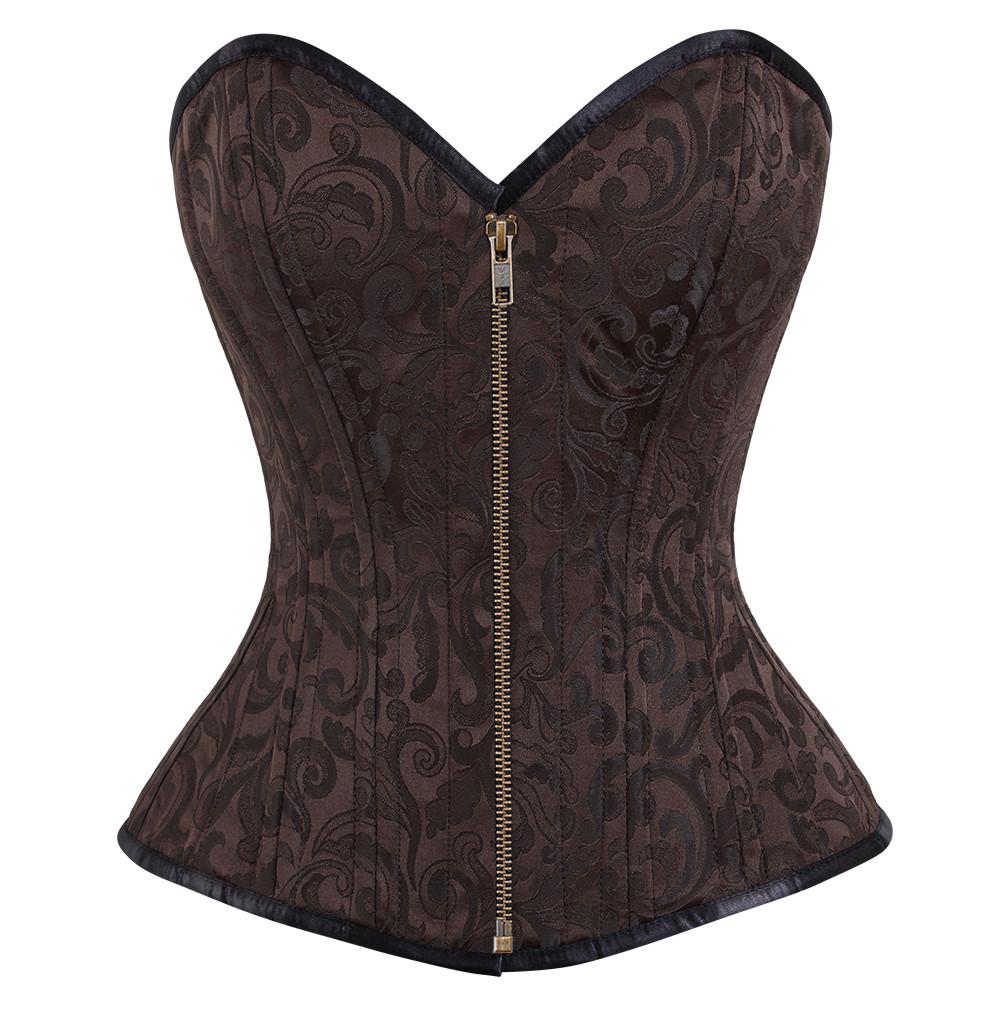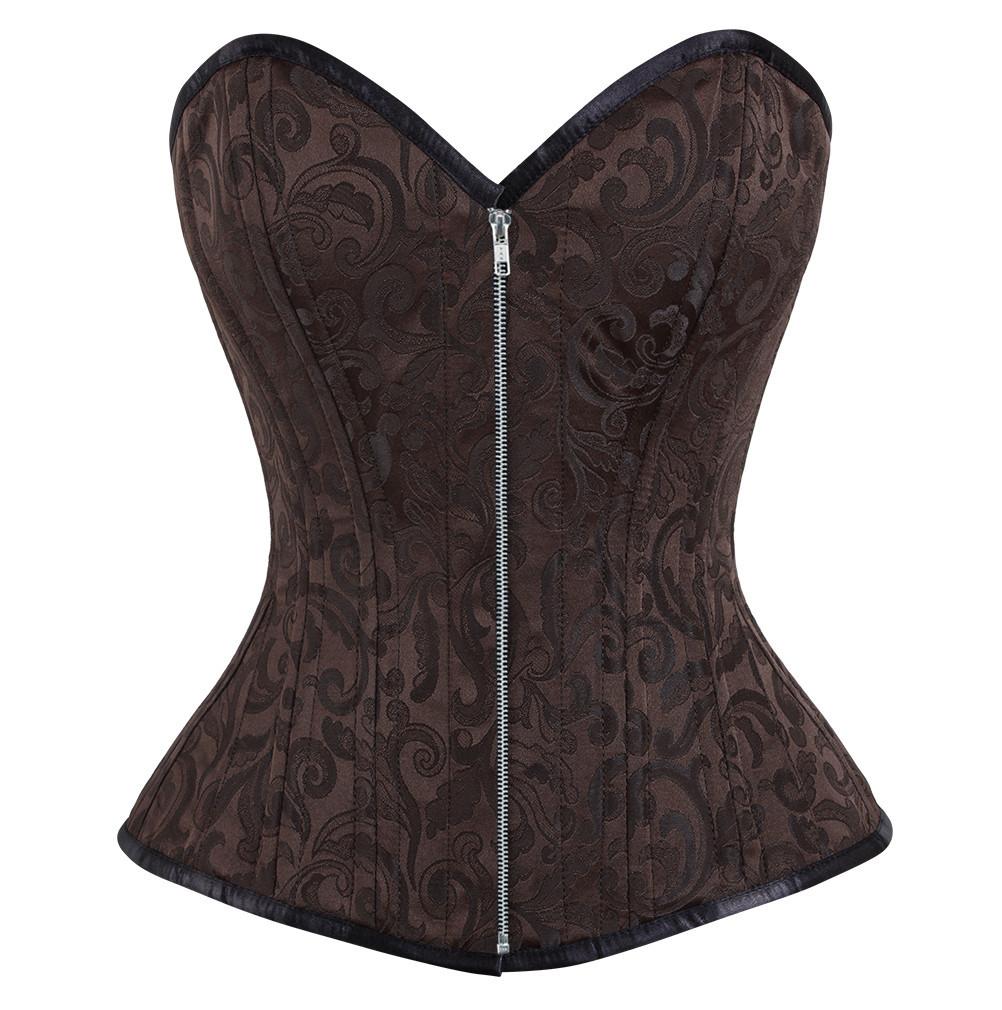 - Brown Brocade Overbust Waist Training Corset