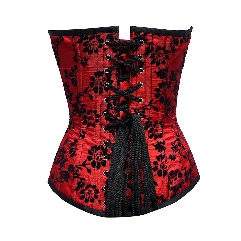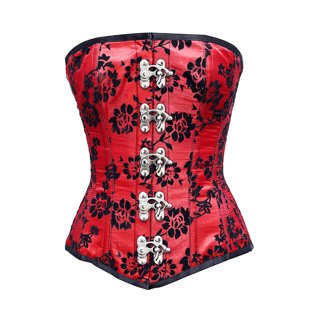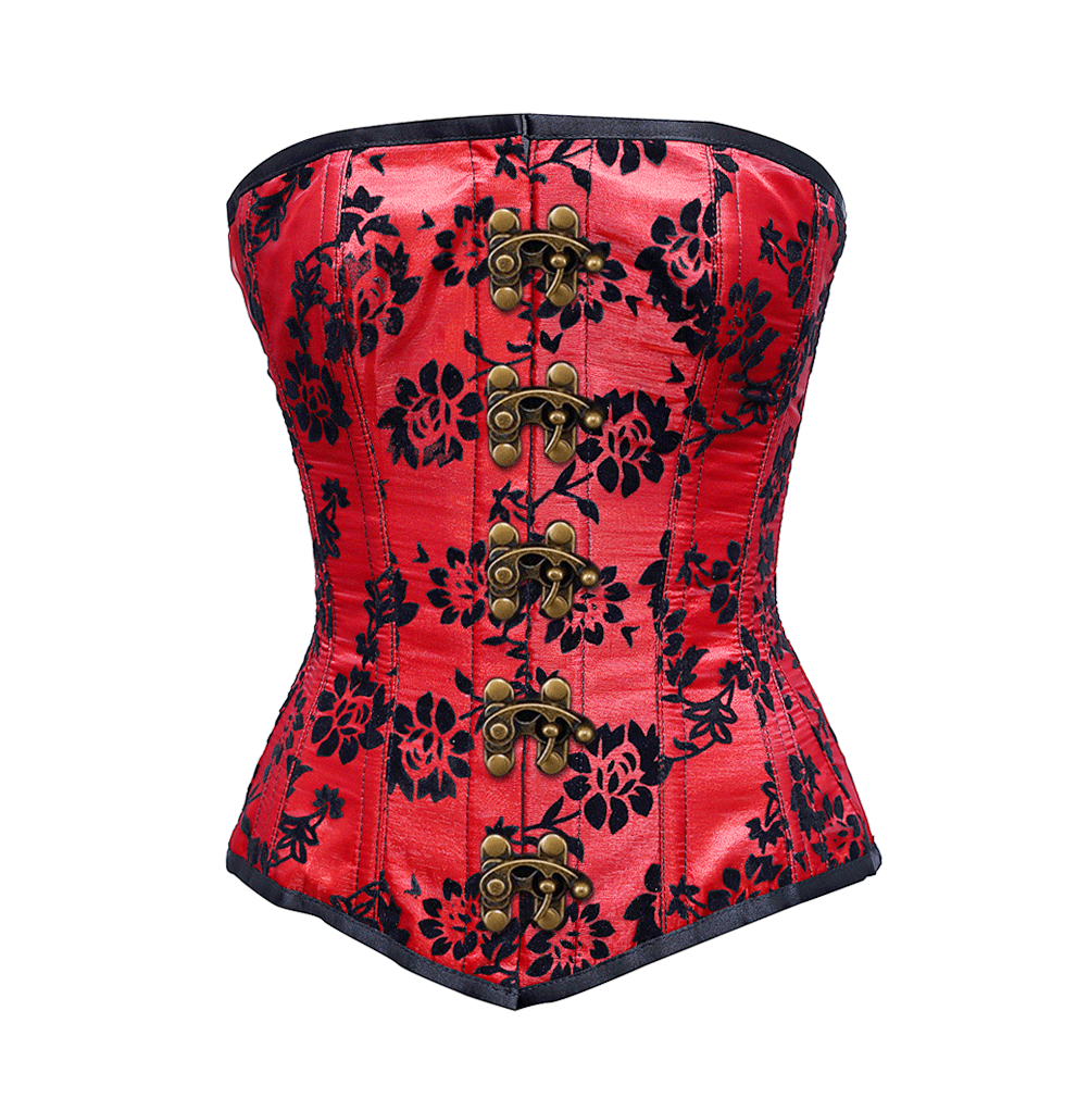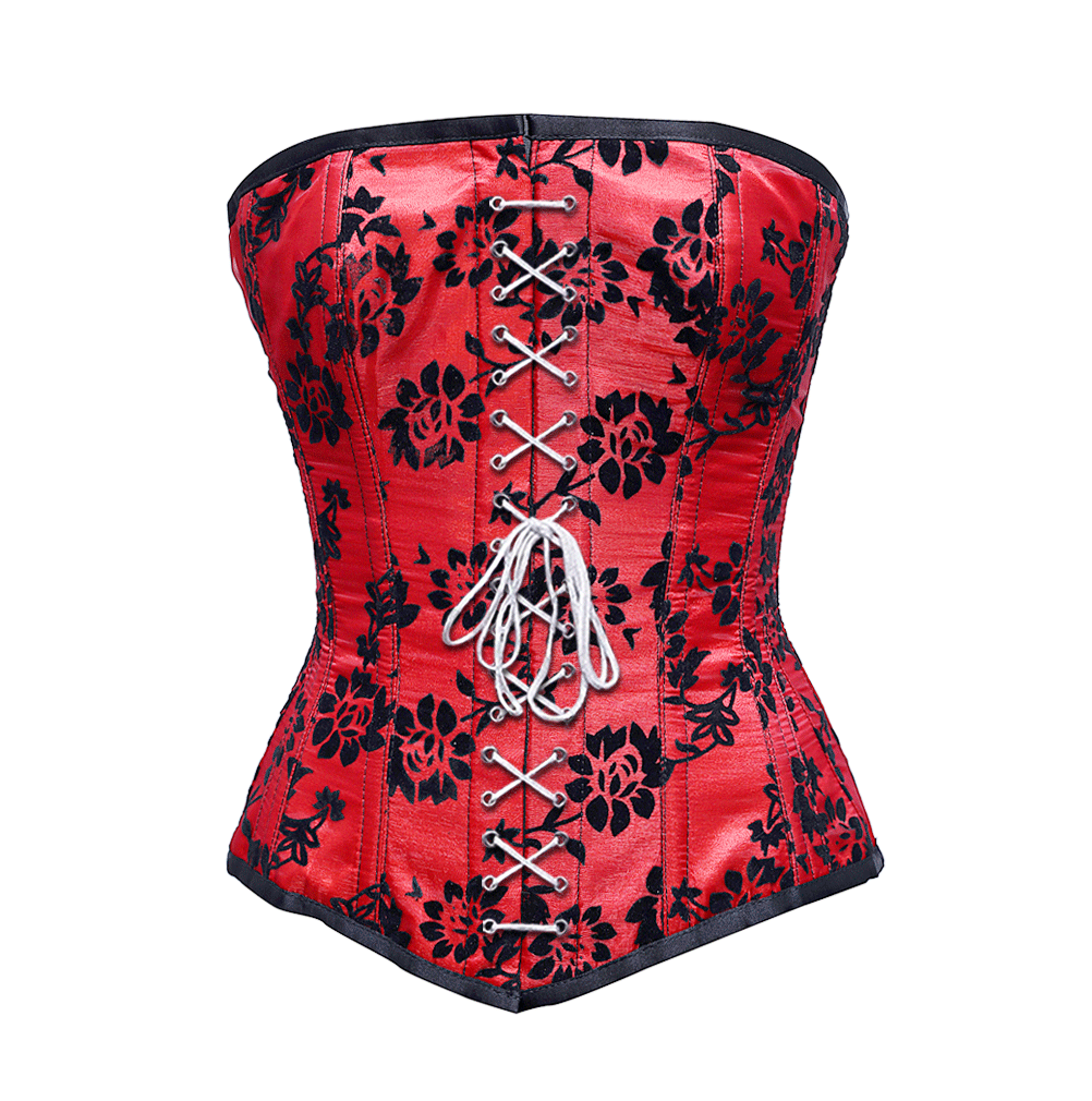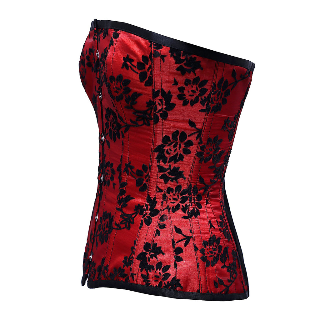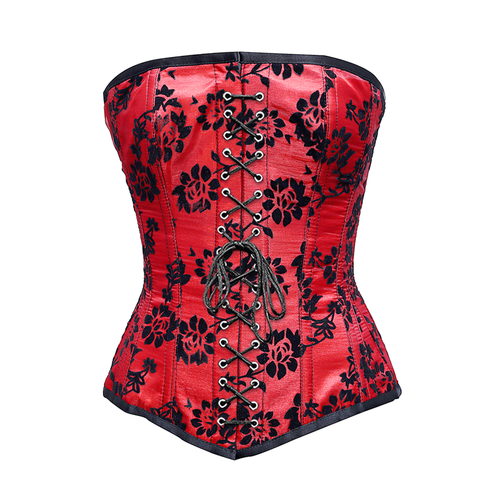- Red Overbust Corset With Tissue Flocking