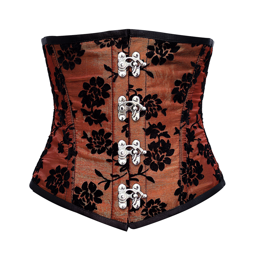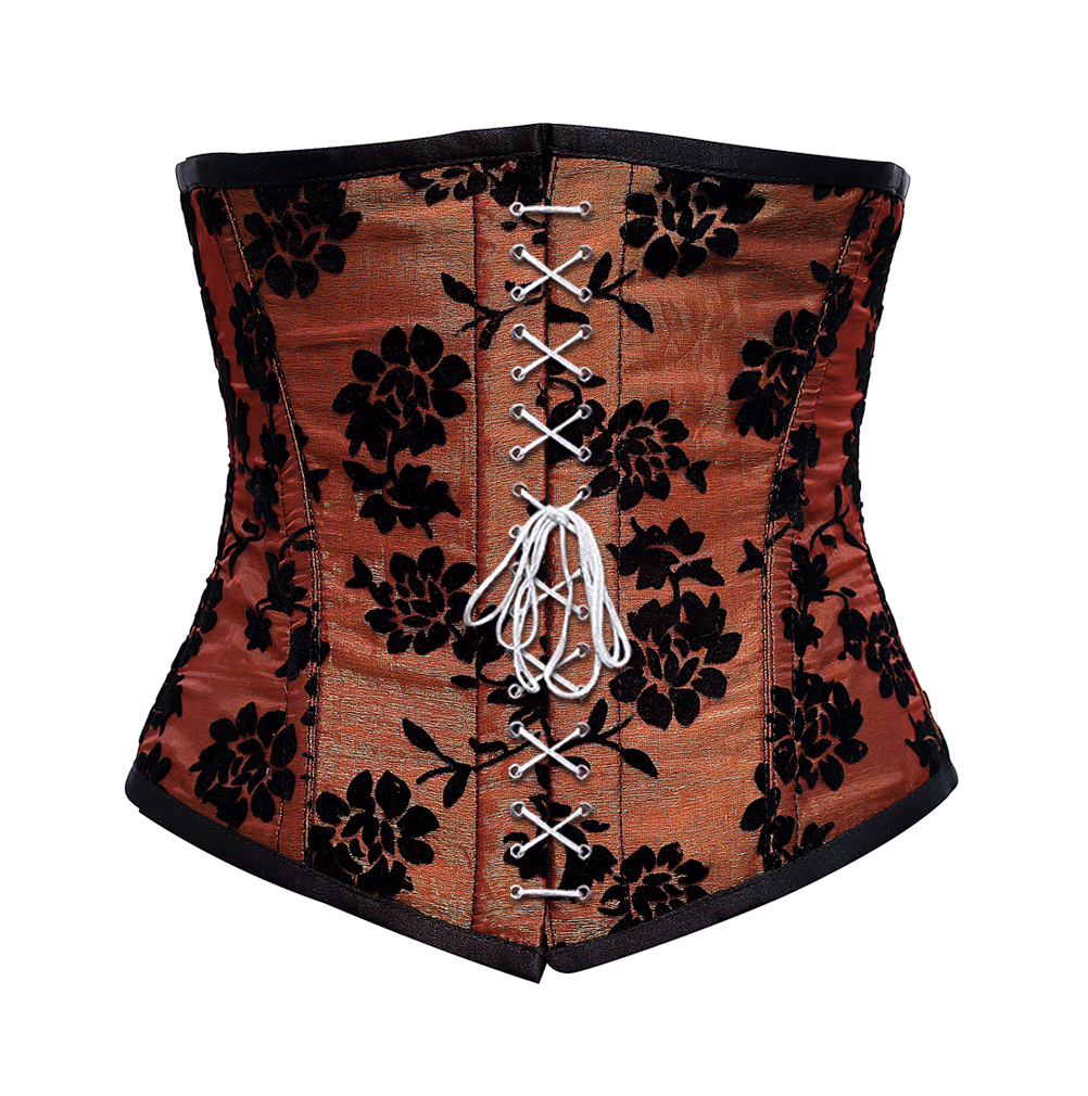 • Steel Bone Burgundy Underbust Corset In Tissue Flocking