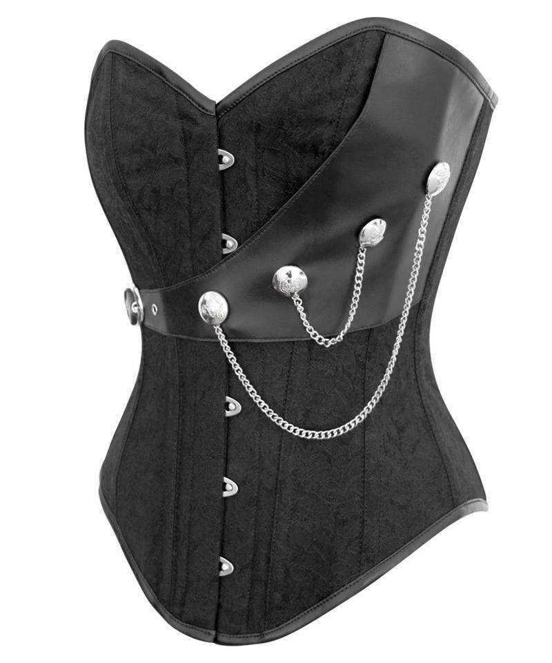 - Instant Shape Black Brocade Steampunk Corset with Chains