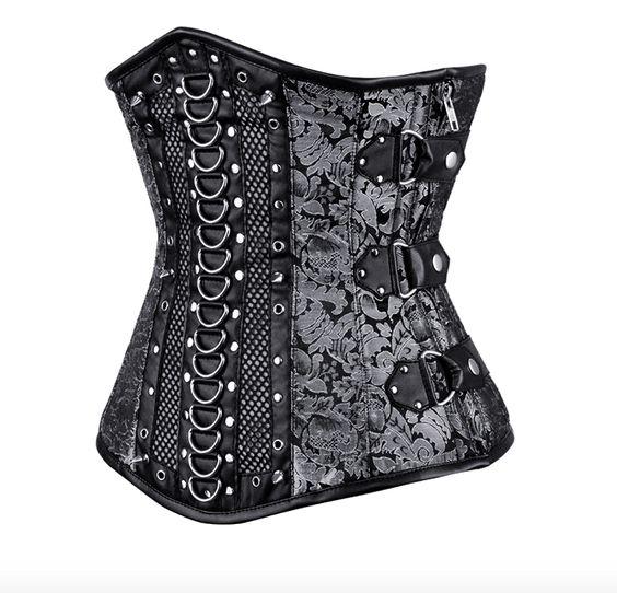 - Silver Brocade Underbust Gothic Corset With Buckle