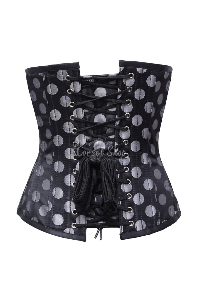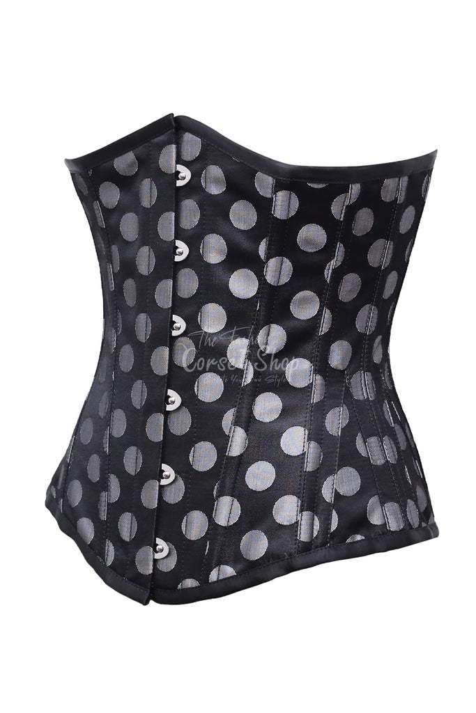 Fionnuala Silver Polka Dot On Black Satin Underbust Corset