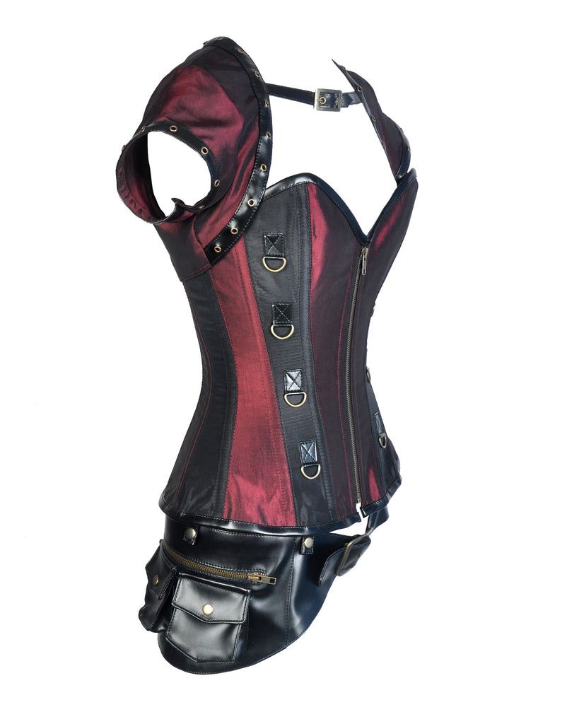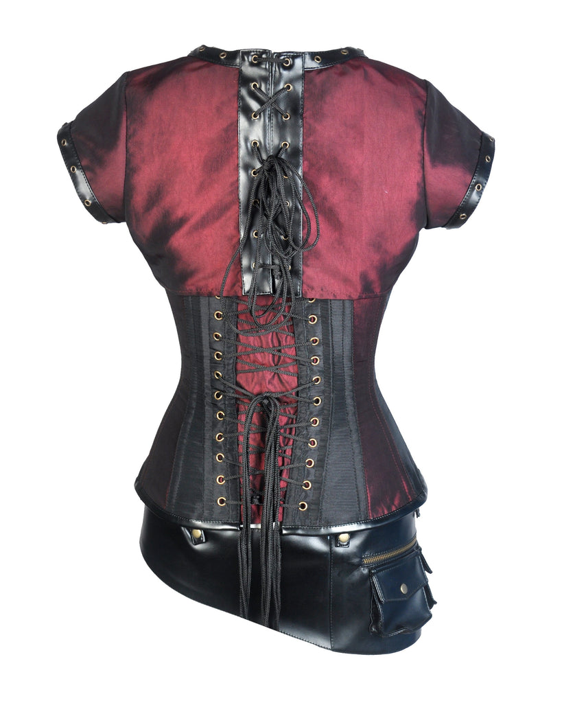 • Burgundy and Black Taffeta Steampunk Corset