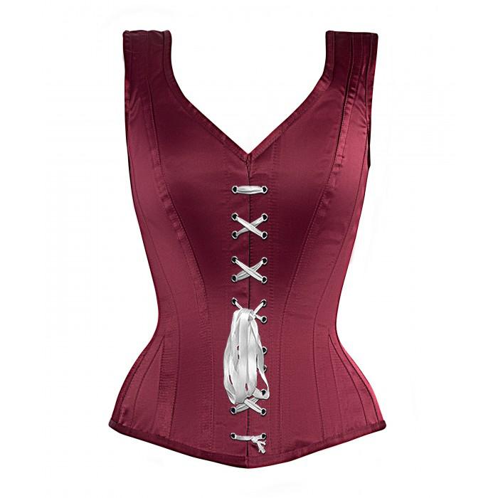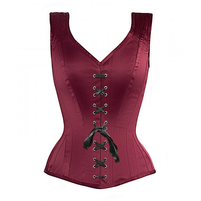 • Authentic Steel Boned Burgundy Satin Overbust Corset