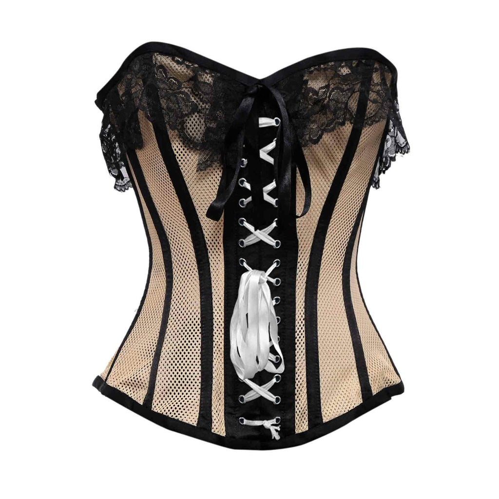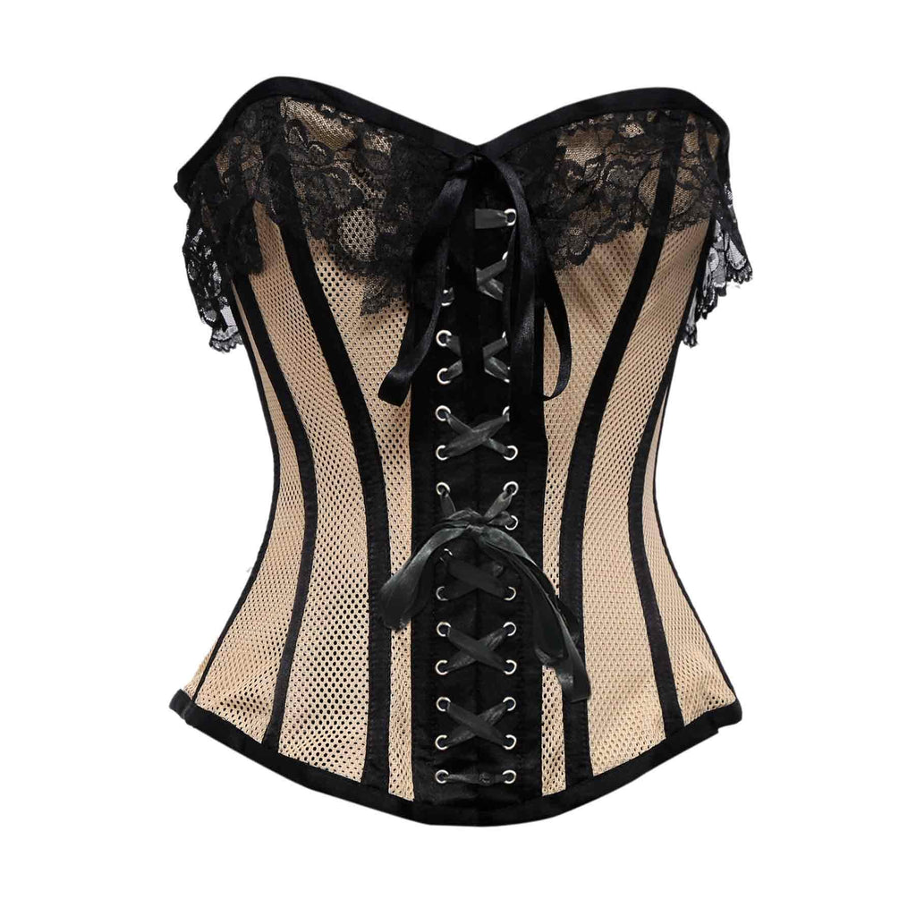 Kavil Beige Mesh & Black Satin Lace Overbust Corset