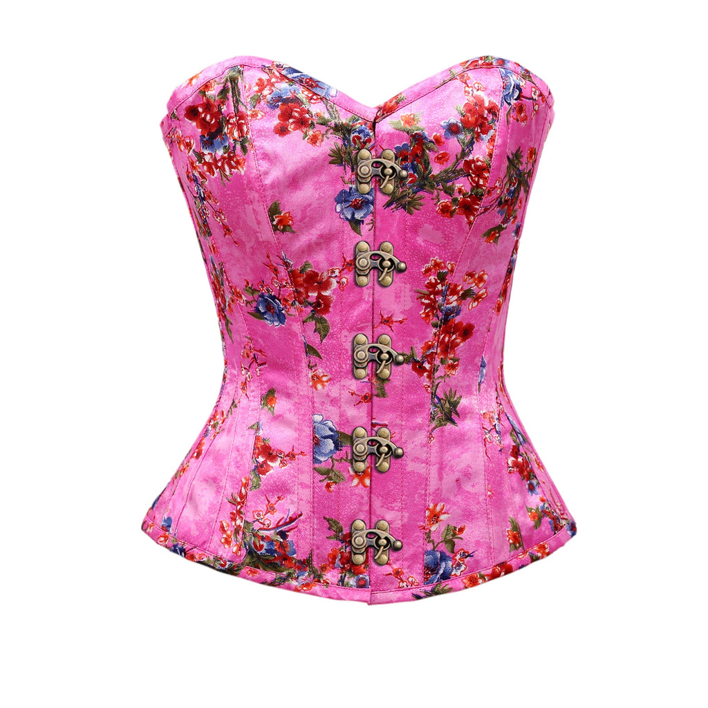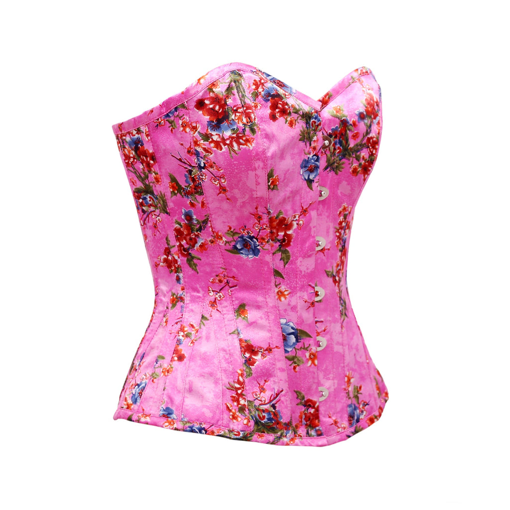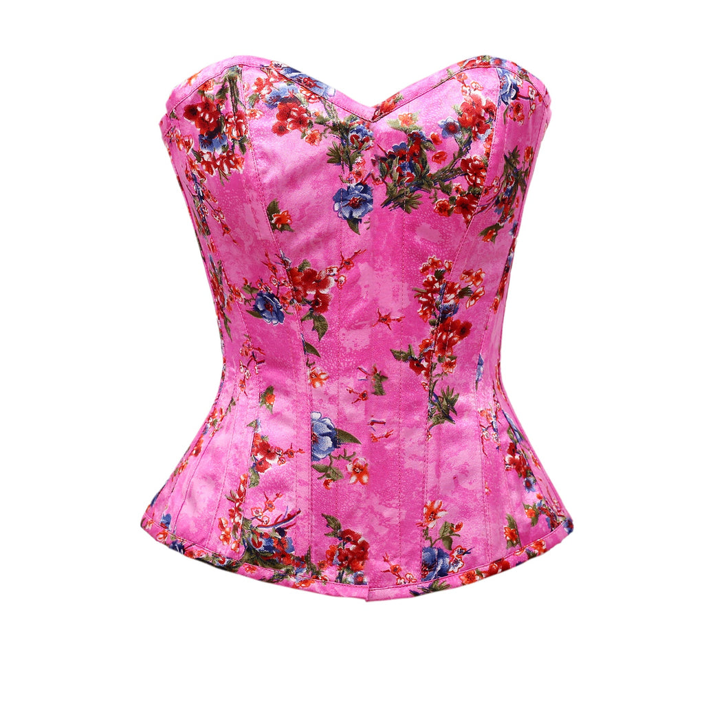 • Steel Bone Floral Print Satin Overbust Corset