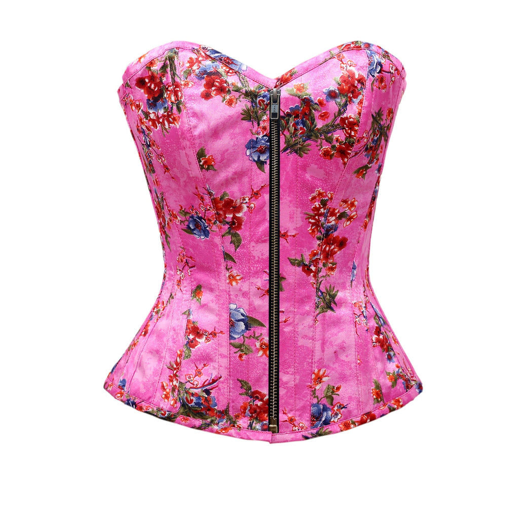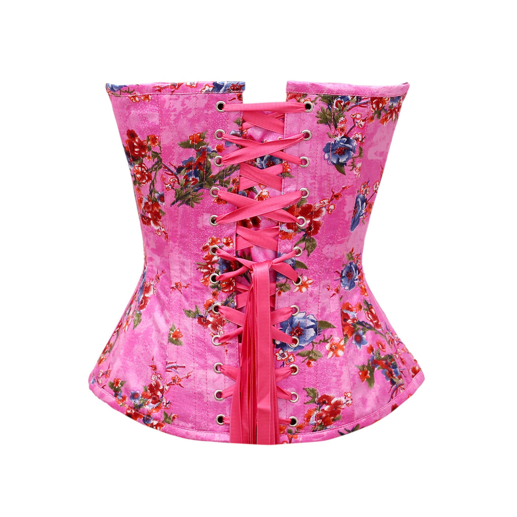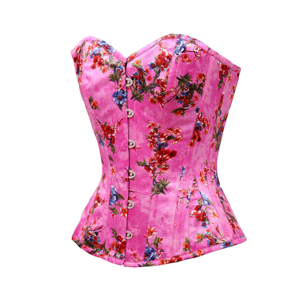 • Steel Bone Floral Print Satin Overbust Corset