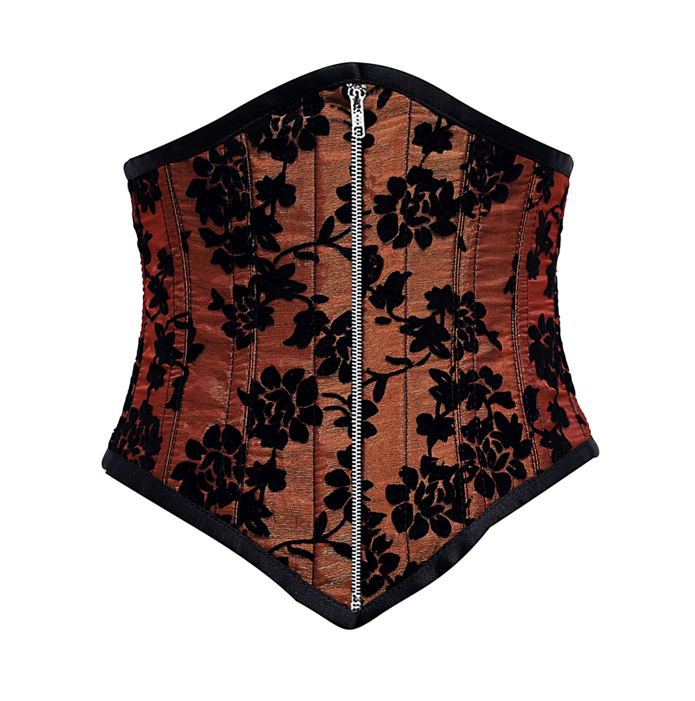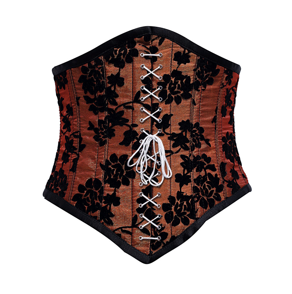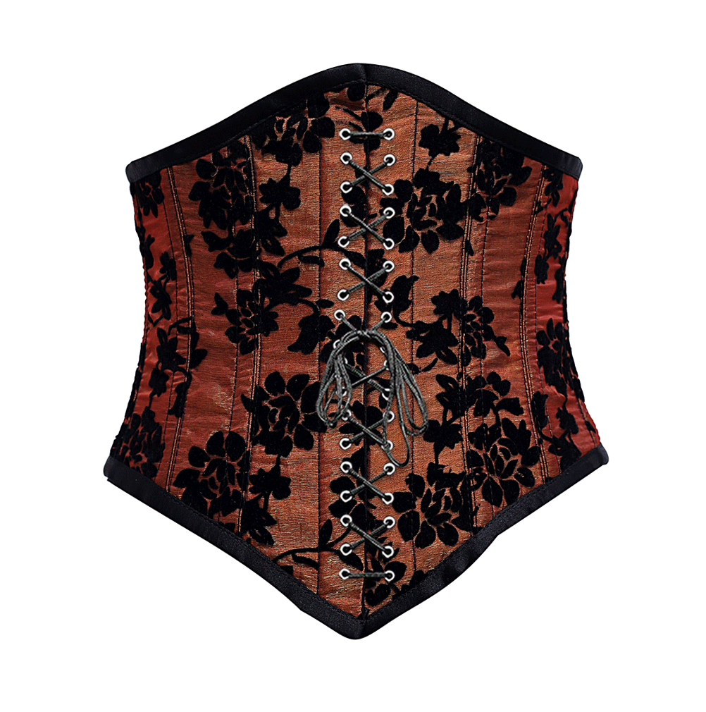 Rapinoe Burgundy Underbust Corset With Tissue Flocking