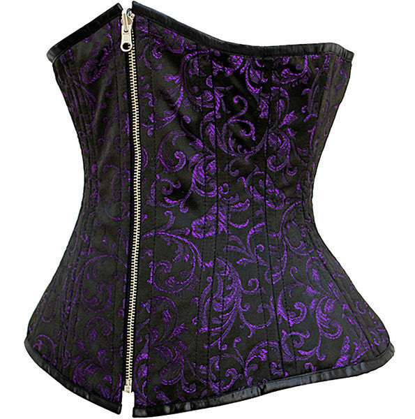 - Purple Brocade & Black Satin Underbust Reversible Corset