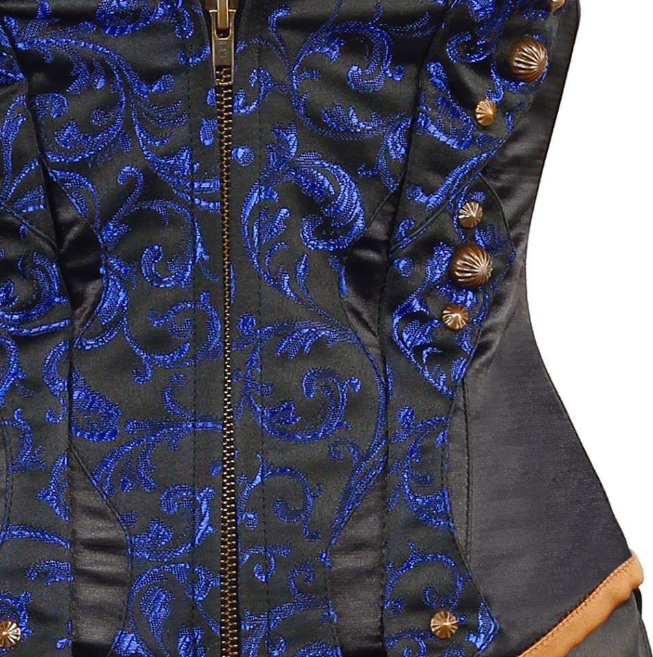 • Steel Boned Blue Brocade & Black Satin Underbust Corset