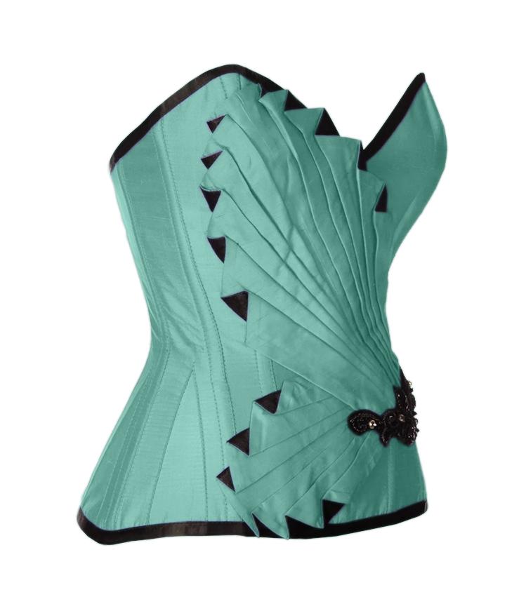 • Sea Green Satin/Taffeta Embroidered Overbust Corset