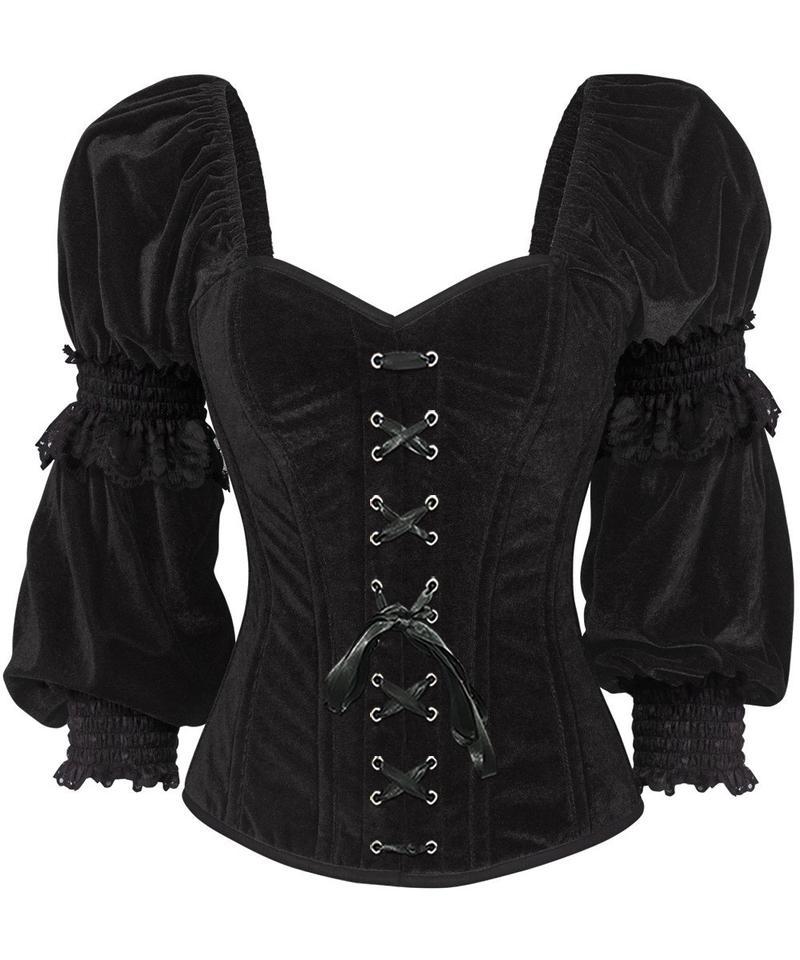 Dybala Gothic Overbust Black Corset with Attached Sleeve