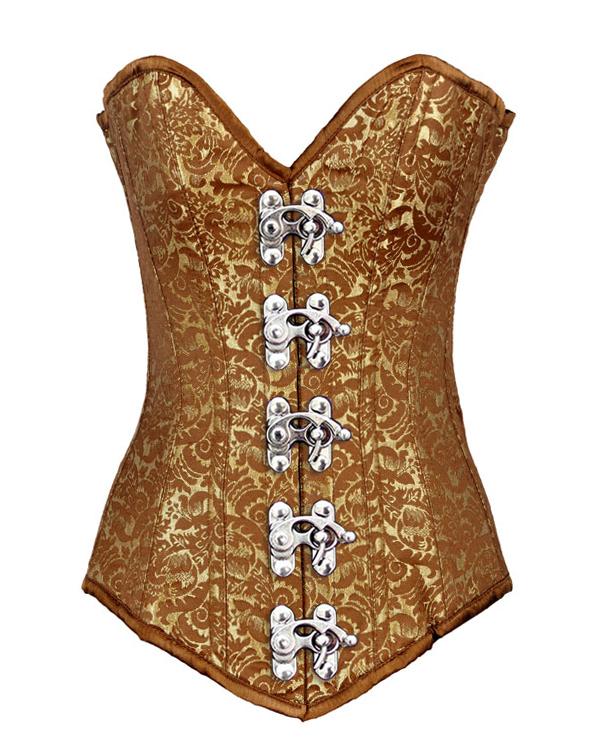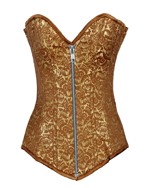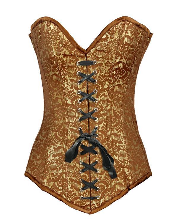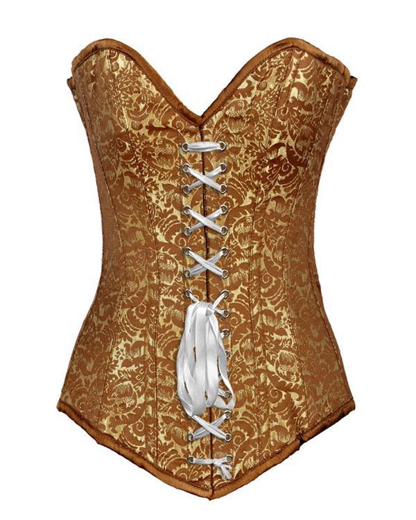 • Gold Brocade Longline Overbust Corset