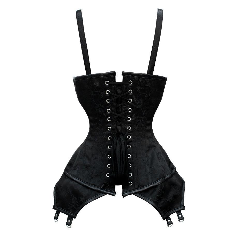- Black Brocade Gothic Steel Boned Overbust Corset