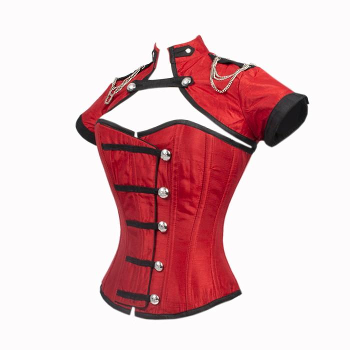 Eric Red Corset With Button Down Placket And Jacket