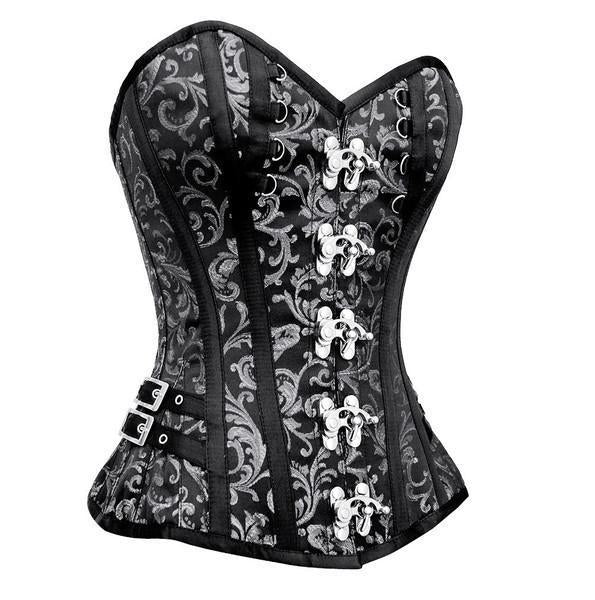 • Silver Brocade Steampunk Overbust Corset