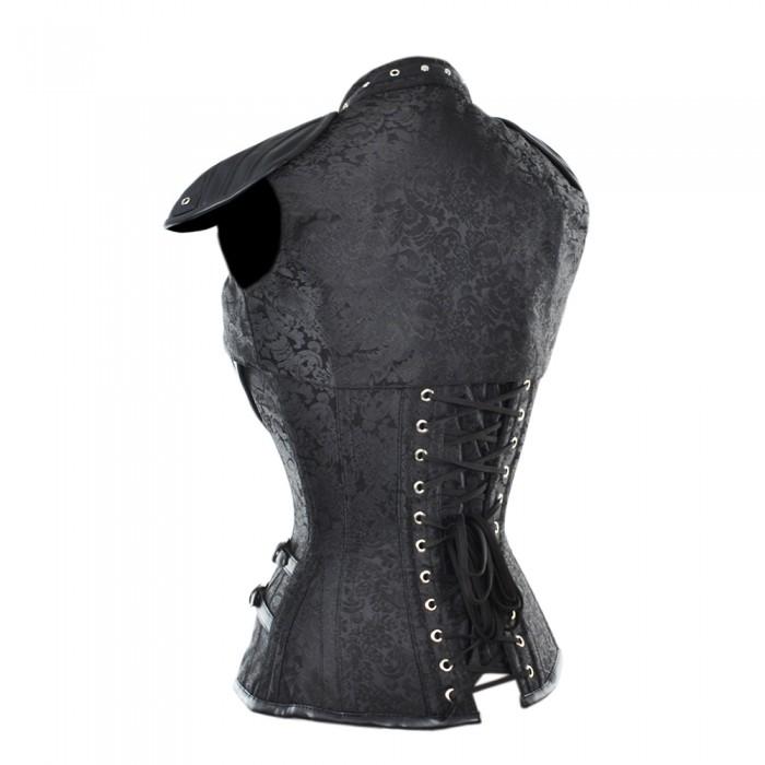 • Faux Lether Brocate Corset With Sholder Plates Jacket