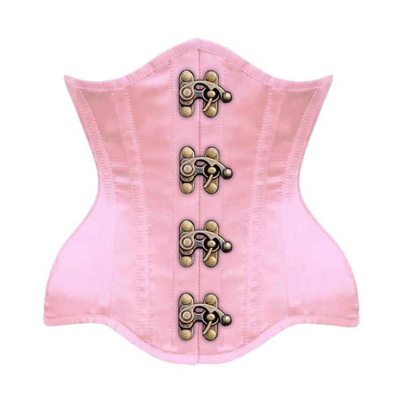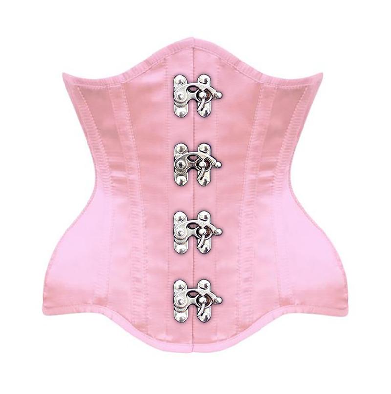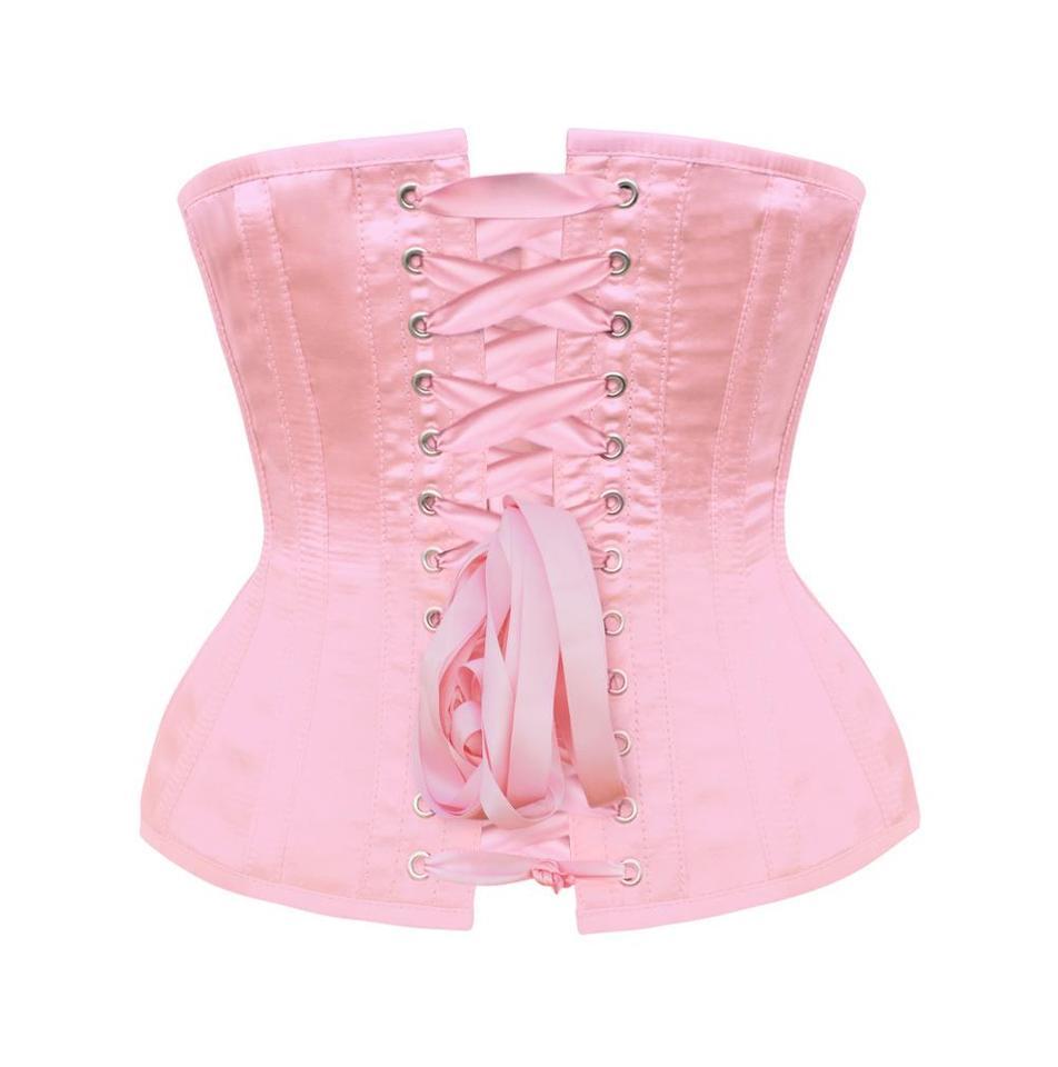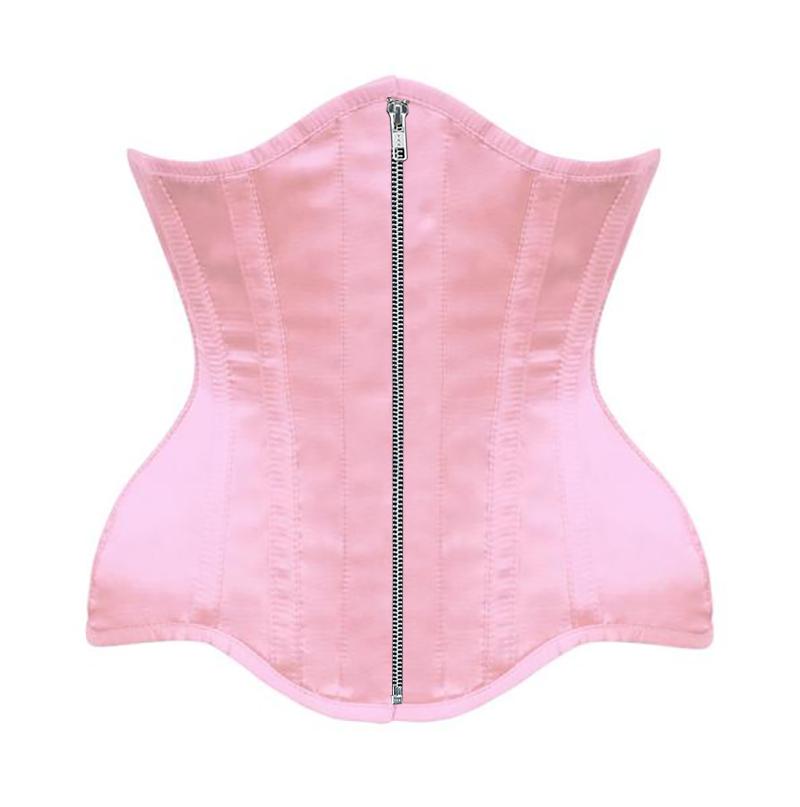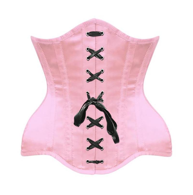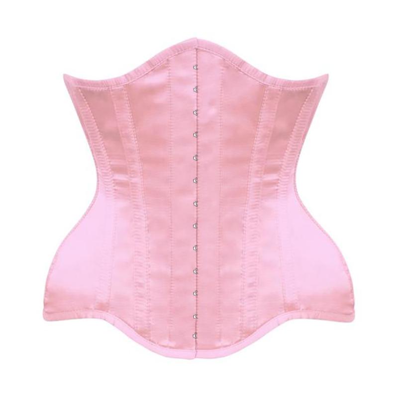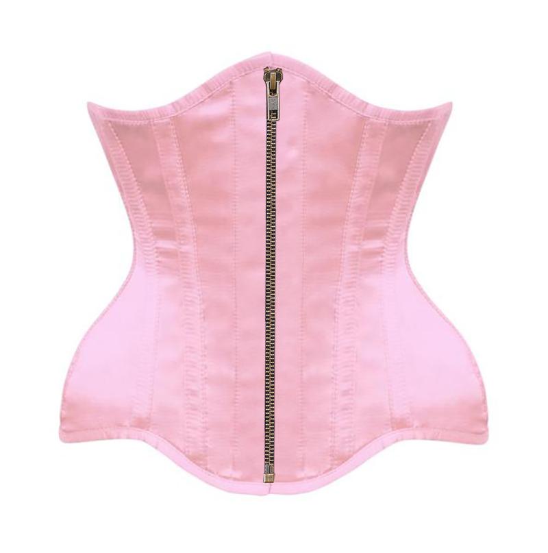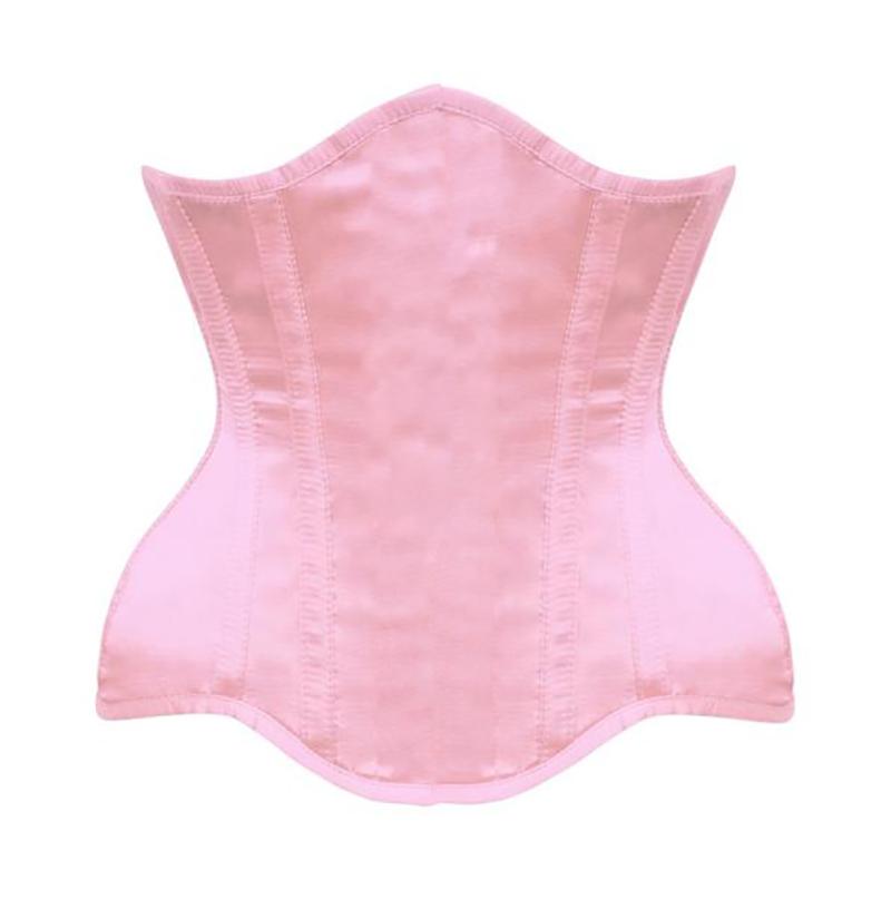 • Spiral Steel Boned Underbust Curvy Corset in Pink Satin
