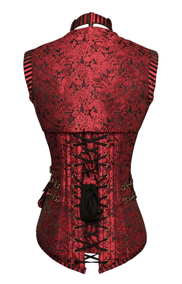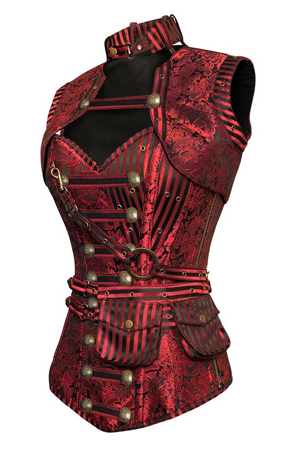 Judi Red Steampunk Corset With Red Removable Pouch