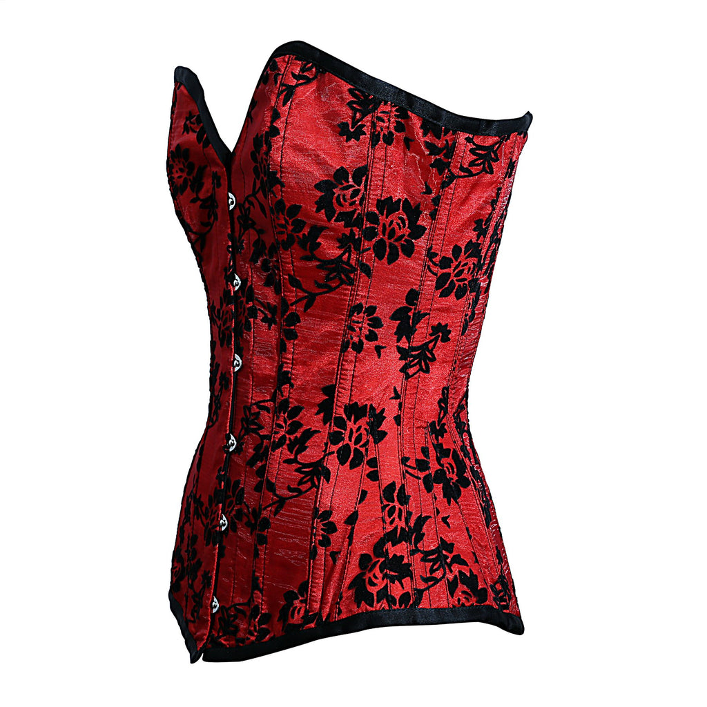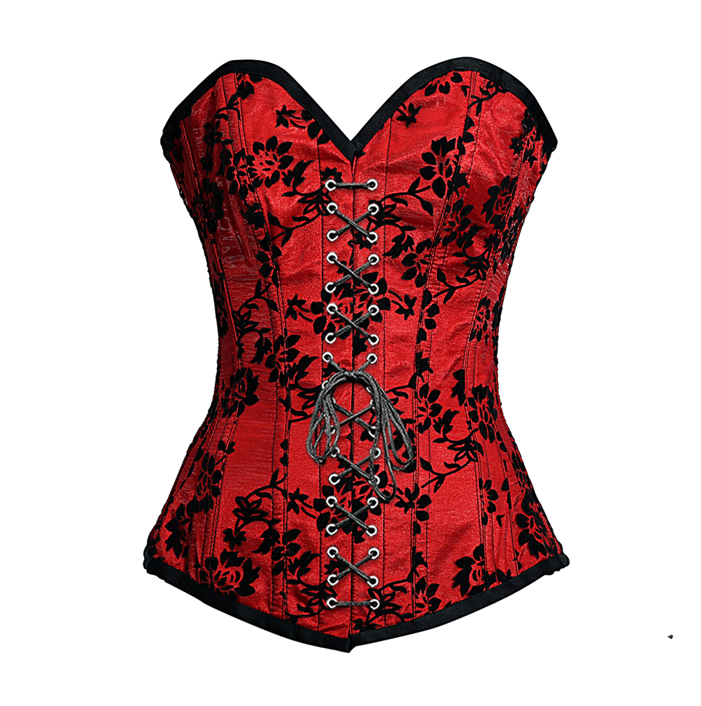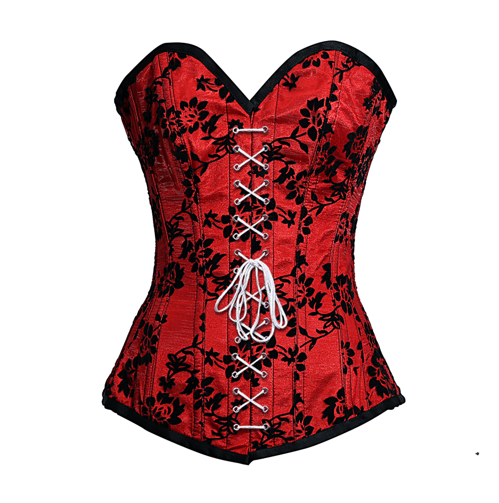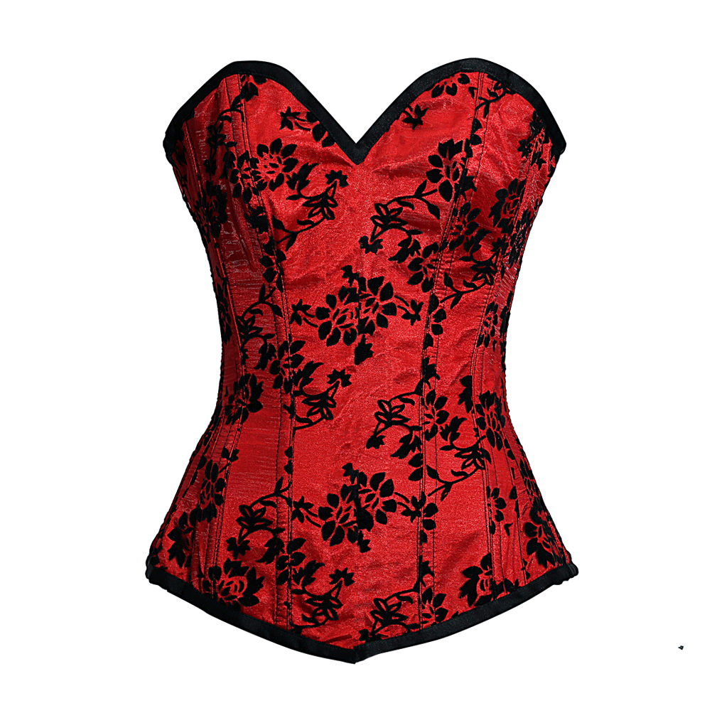 - Steel Boned Red Longline Corset In Tissue Flocking