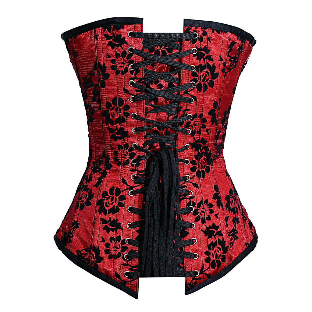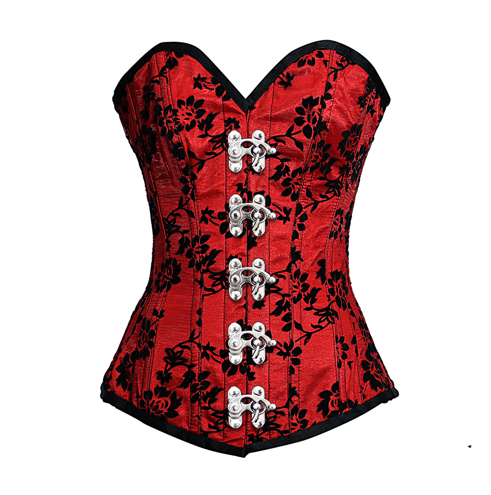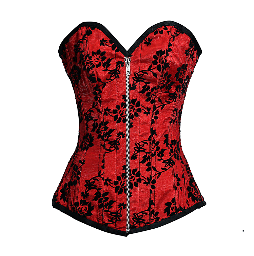 - Steel Boned Red Longline Corset In Tissue Flocking
