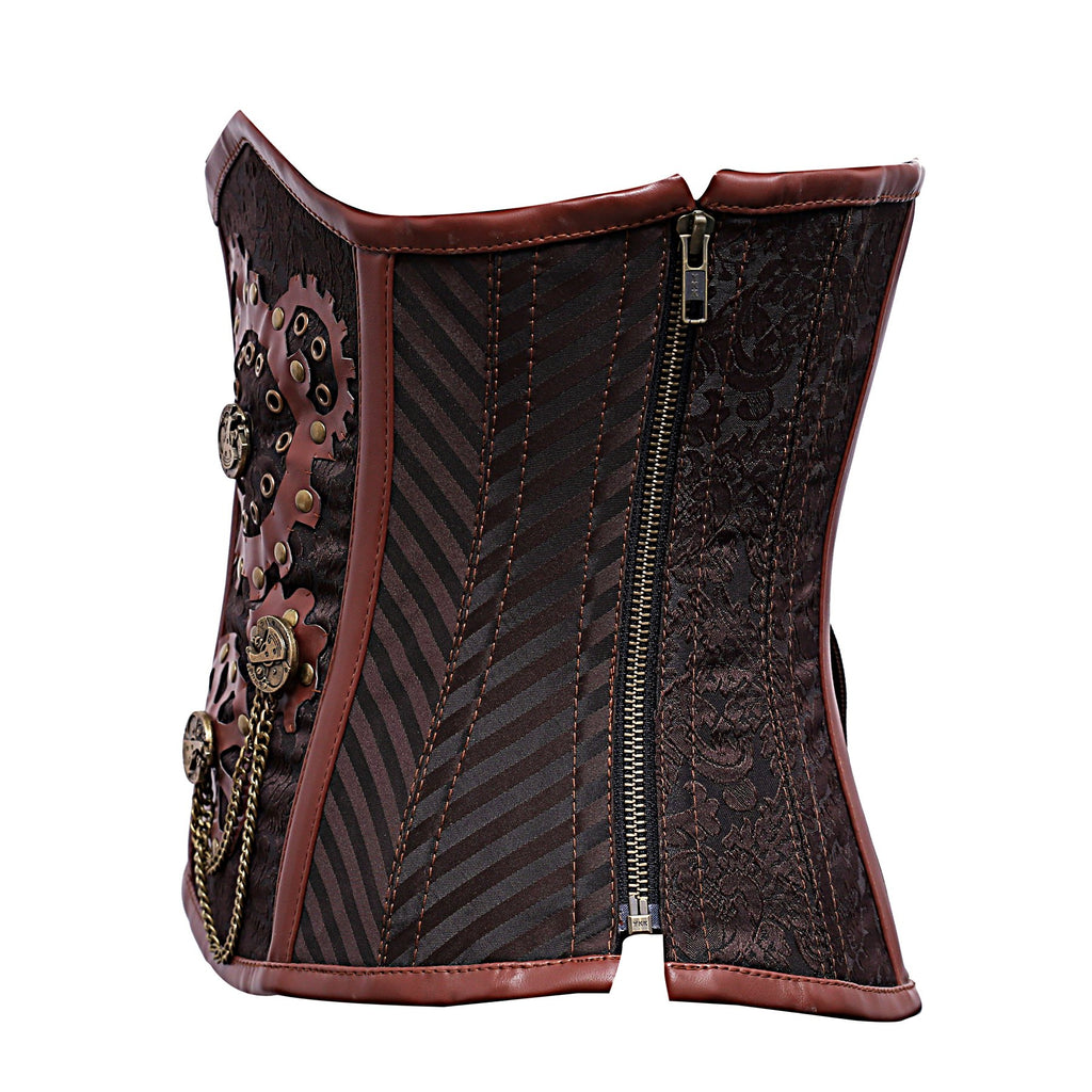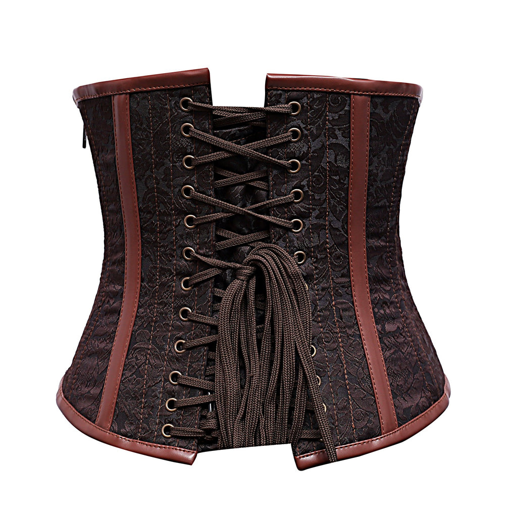 - Brown Brocade & Faux Leather Steampunk Underbust Corset