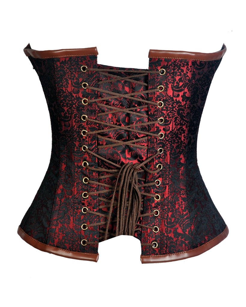 - Red Brocade & Brown Faux Leather Gothic Corset
