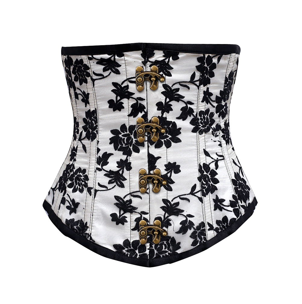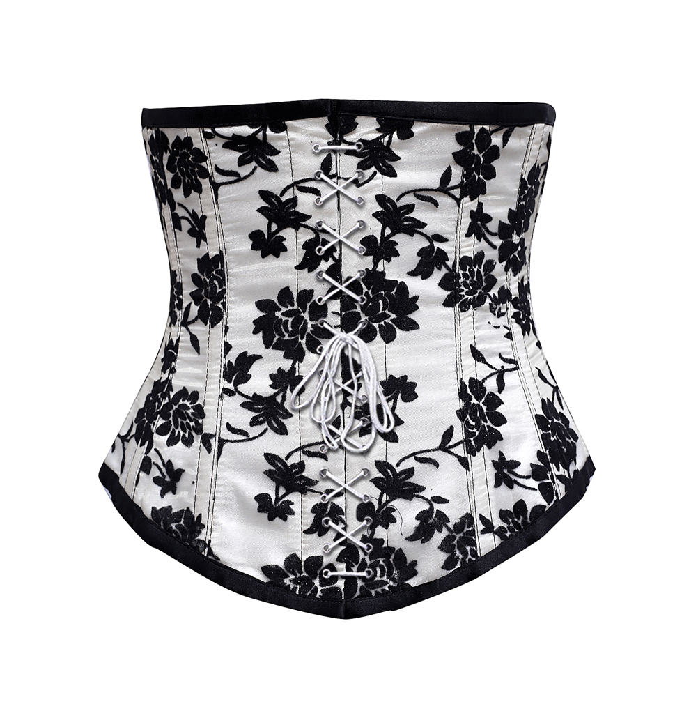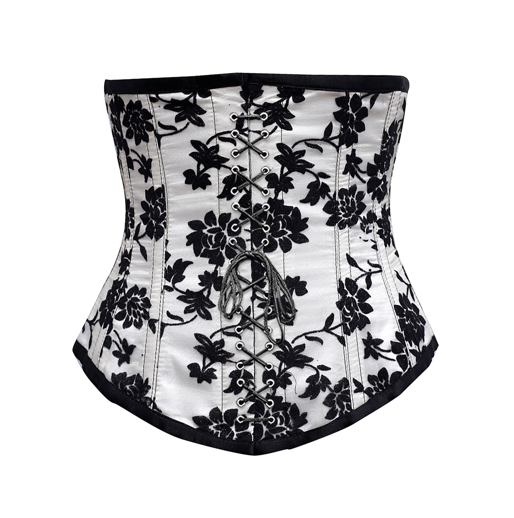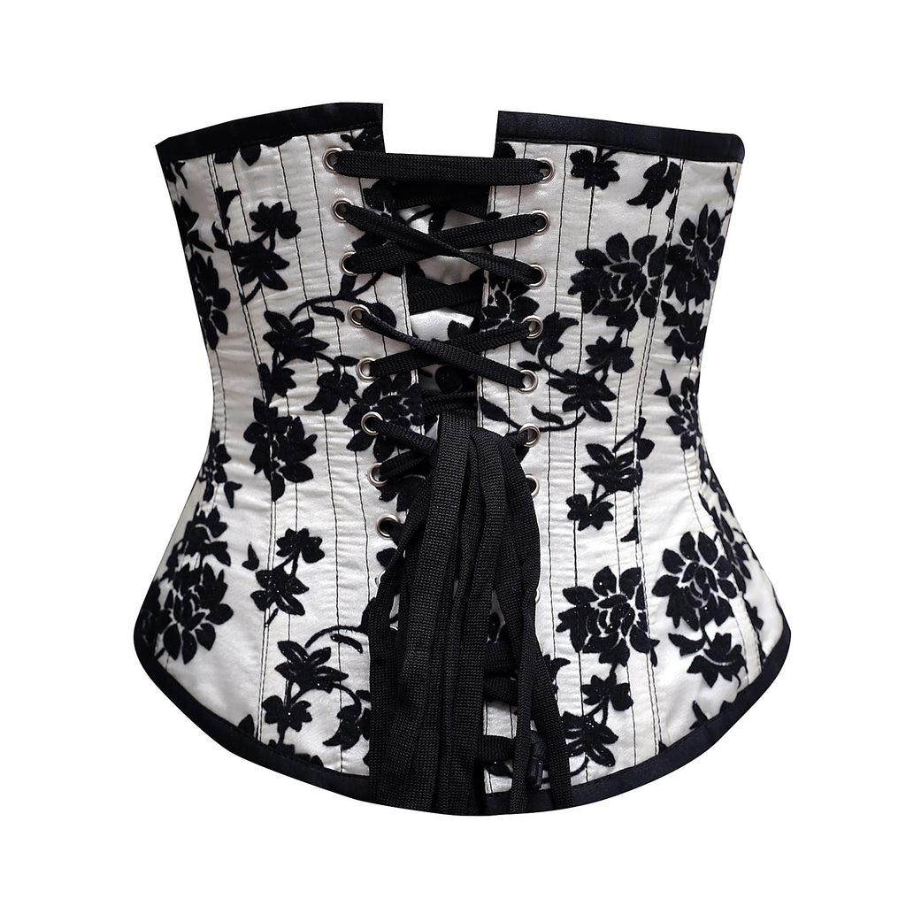 - Steel Bone White Satin Underbust Corset In Tissue Flocking