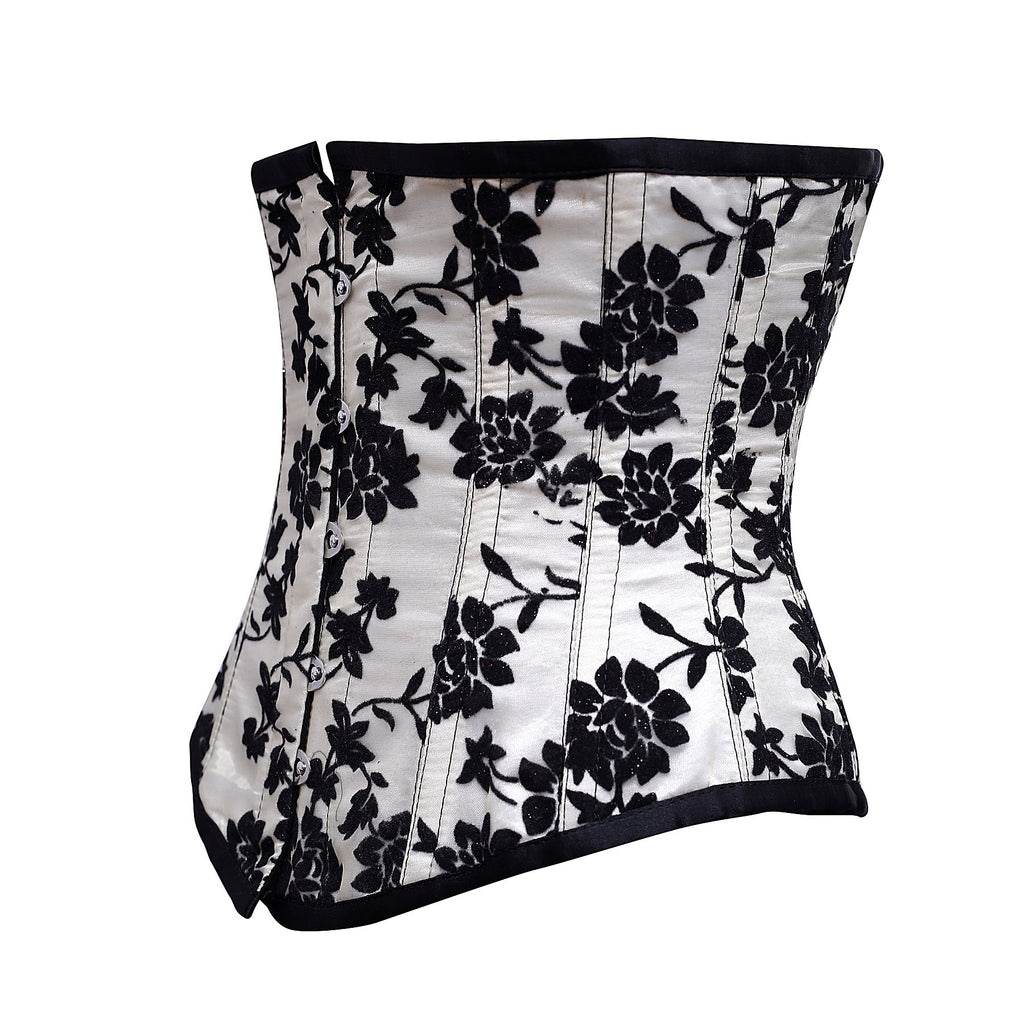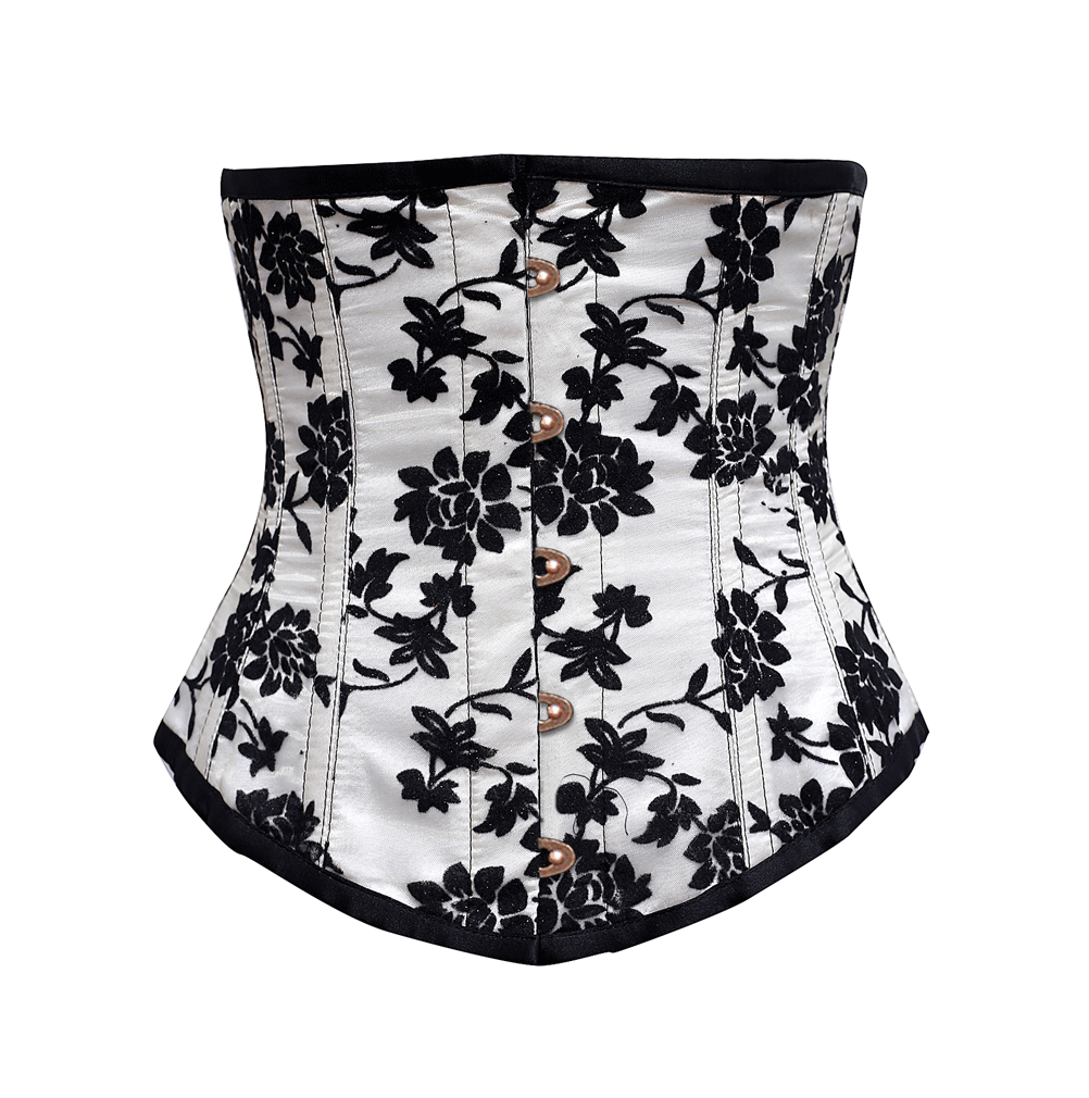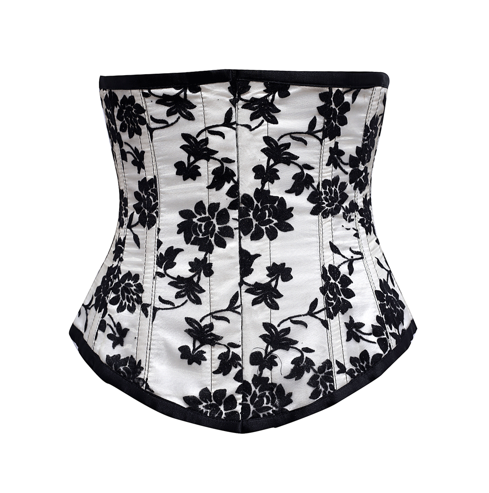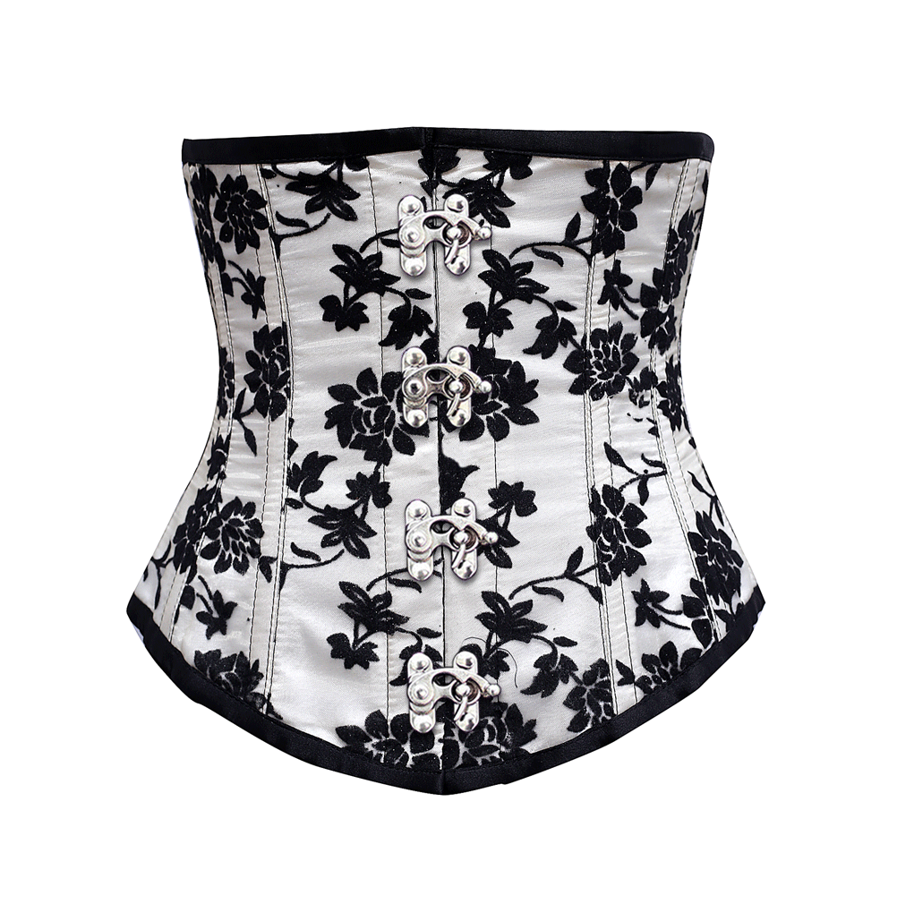 - Steel Bone White Satin Underbust Corset In Tissue Flocking